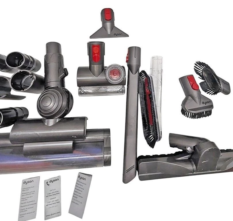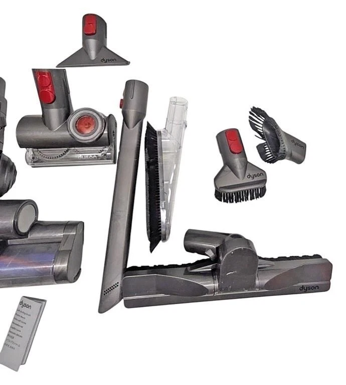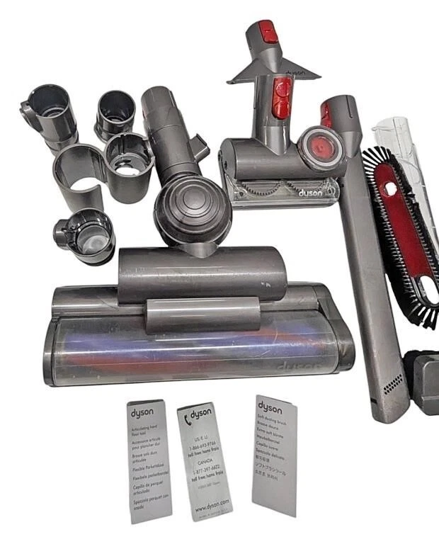 Enhance your cleaning experience with this comprehensive set of Dyson attachments. Designed to fit a variety of Dyson vacuum models, this lot includes nine pieces, offering versatile tools to tackle various surfaces and tasks. Each attachment is crafted to align with the high standards of the Dyson brand, ensuring durability and efficient performance. The set's centerpiece is the brush head/tool attachment, meticulously engineered to seamlessly connect with your Dyson vacuum. Whether you're looking to tackle stubborn pet hair or reach into tight spaces, these attachments are designed to make your cleaning routine effortless and effective. With this complete set, you'll have the right tool for every cleaning challenge.