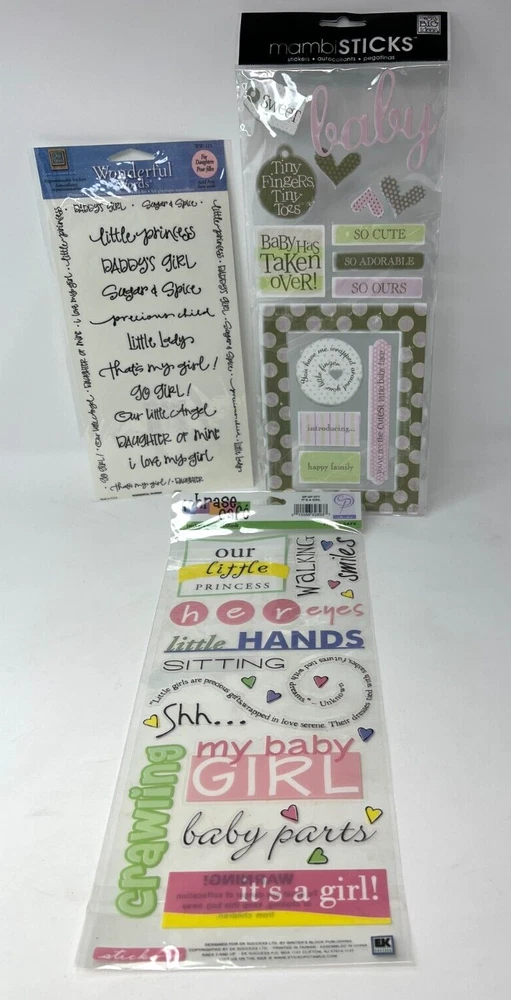 Lot of Girl Baby Princess Newborn Scrapbooking Stickers Phrase Cafe Mambi Stick+ You will receive the 3 packages shown in picture. They are Mambi Sticks 14 Pieces Phrase Cafe and Wonderful Words Product Condition PRODUCT CONDITION: We sell vintage, overstocks, returns, shelf-pulls and new items. Items could have dents, shelf wear, torn and not in the greatest condition. In no way does this effect the product itself. If we think a product is unsafe or used, we will not list it. We inspect carefully and will describe the condition as best as we can. Any problems, please contact us immediately so we can rectify the problem. Shipping Shipped within 1 Business Day. All orders are processed and shipped out within 1 Business Day. All orders received on Saturday and Sunday will be shipped out Monday. Returns 30 Day Return Policy on most items. We will gladly accept returns. Item(s) must be returned in original, unused condition within 30 days with original tags/packaging. Cancellation Policy If you wish to cancel the order, please open a cancellation request. If the order has not already been processed, the order will be cancelled and a full refund will be applied. Please do not message to request for cancellation, as we might not be able to address all messages in timely manner. Incorrect Shipping Address It is Buyers responsibility to ensure that the shipping address provided is correct.