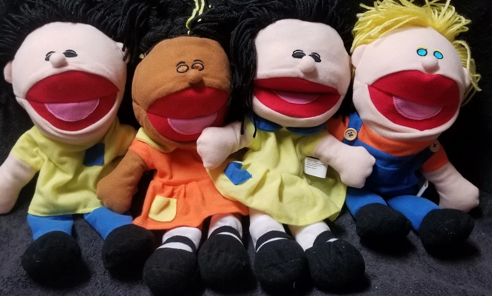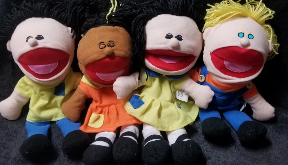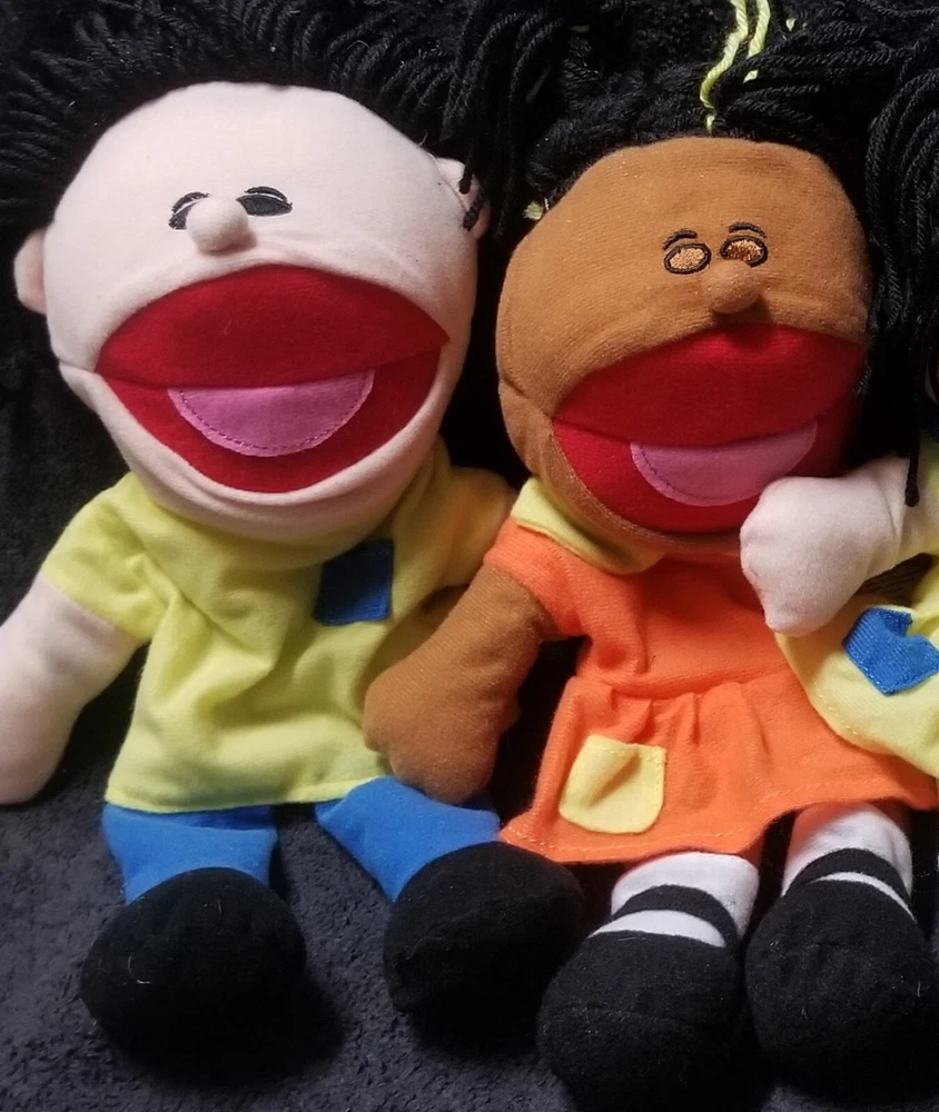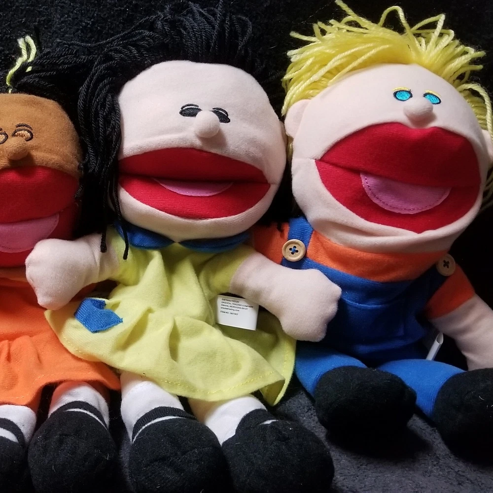 You are bidding on a Lot of 4 NWOT plush, multicultural toy Hand Puppets exactly as shown! Each adorable, 14" in. puppet is lighweight, & has a comoletely different outfit in bright, vivid colors, features sweet yarn hair, a fully operational open/closing mouth, & these are perfect for a daycare setting, at home play, or even just keeping at the grandparents home for kids to enjoy! Rec ages 2+ Machine washable. Fantastic set of toys from Oriental Toy Co. These are all in new condition (without tags), & would make a great holiday gift for either a boy, a girl, or both! Hand Puppets are such a fun way for your kids or grandkids to unleash their creativity, imagination, & educational learning through active / interactive playtime! Happy bidding! - Happy Puppet Shows! & thanks so much for stopping by to check out all of our auctions! :)