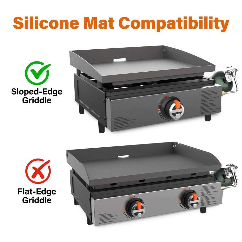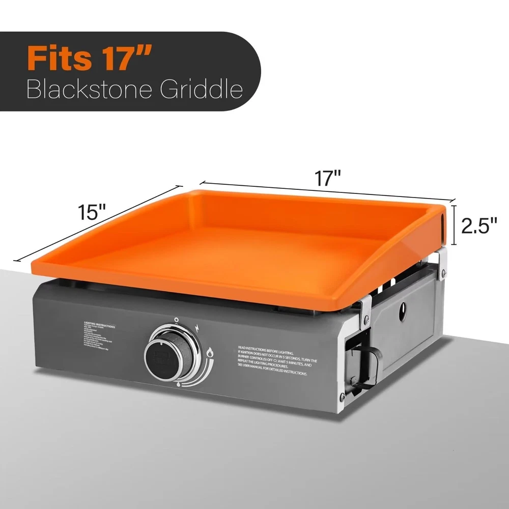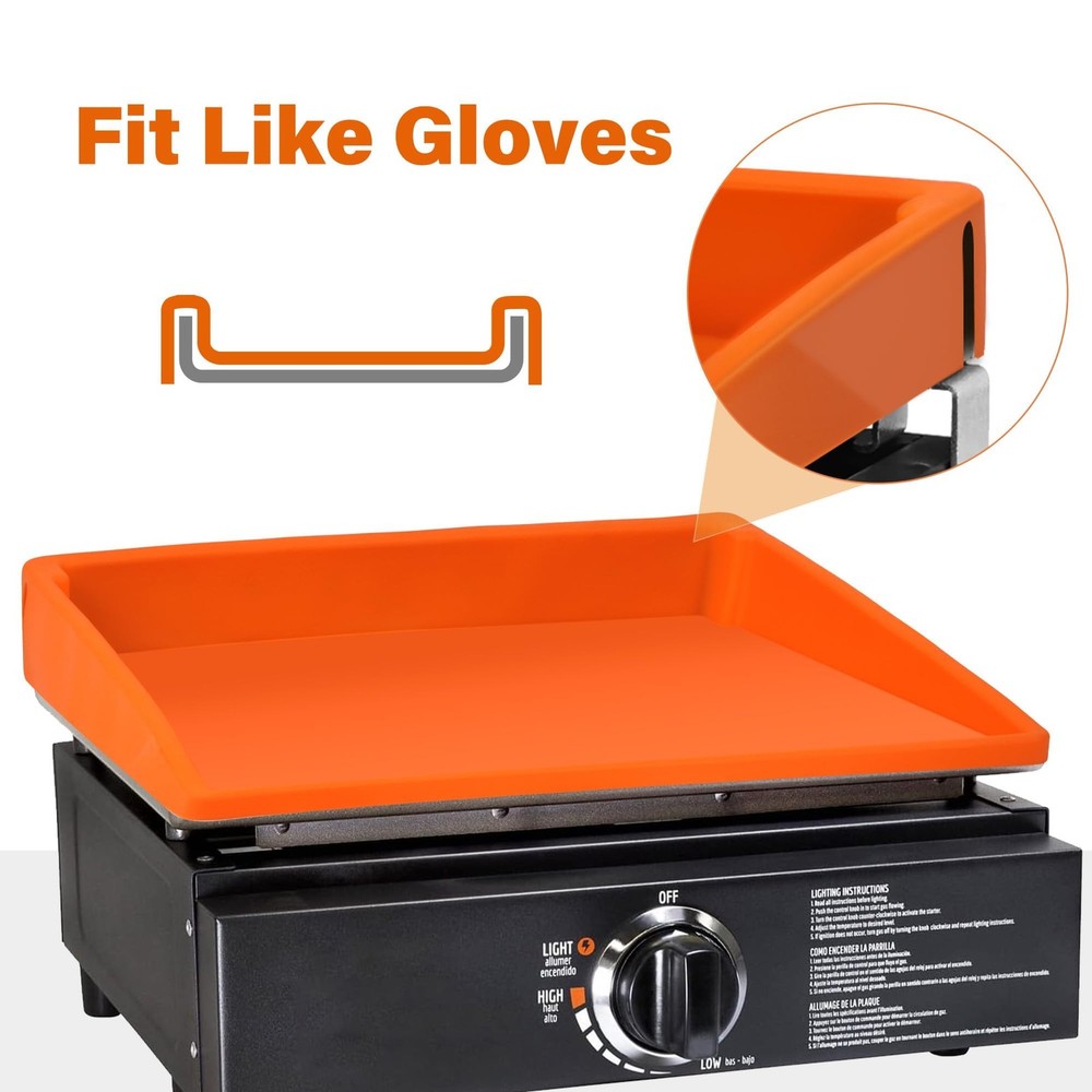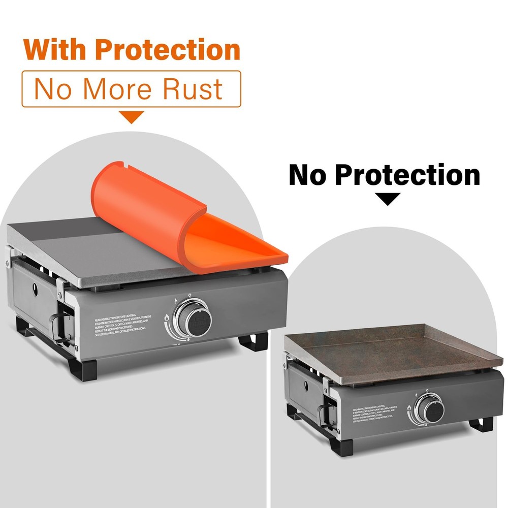 Full Coverage Silicone Griddle Cover for Blackstone Griddles. No one wants their Blackstone grill rusting or getting dirty. Use a silicone protective mat cover to protect the surface and be ready to grill and barbecue anytime. Protection for All Seasons Our silicone bbq grill cover for blackstone covers the cooking surface and wide walls. Effectively keeps out moisture, dirt, bugs and rodents. Thick & Durable Silicone Surface Protector Our outdoor silicone sheet is made of food-grade silicone, waterproof, heat resistant up to 400℉; food safe, foldable. Perfect Fit: Our 17 inch griddle mat measures 17.75 x 16 x 2.5 inches / 45.4x40.5x6cm, Fits 17” Blackstone griddles; All season protection; Note: Measure your griddle before purchasing – especially if it’s a non-Blackstone brand Full Coverage: Our protective silicone mat fully covers the griddle surface and side walls, protects the griddle surface from rust, dust, dirt, debris, critters, bugs and more Heavy Duty & Food-Grade Silicone Mat: Our griddle protector is made of 100% food-grade silicone, thick, durable; heat resistant up to 400℉, DO NOT try to cook food on the griddle cover mat Must Have Griddle Accessory: Silicone toppers for griddle keeps the surface ready to cook and extend your griddle’s service life; no cleaning and prepping the surface after a long storage period Easy to Clean: Our griddle top mat has a smooth surface and is easy to wash by hand or in the dishwasher; super easy to wipe clean; dries quickly