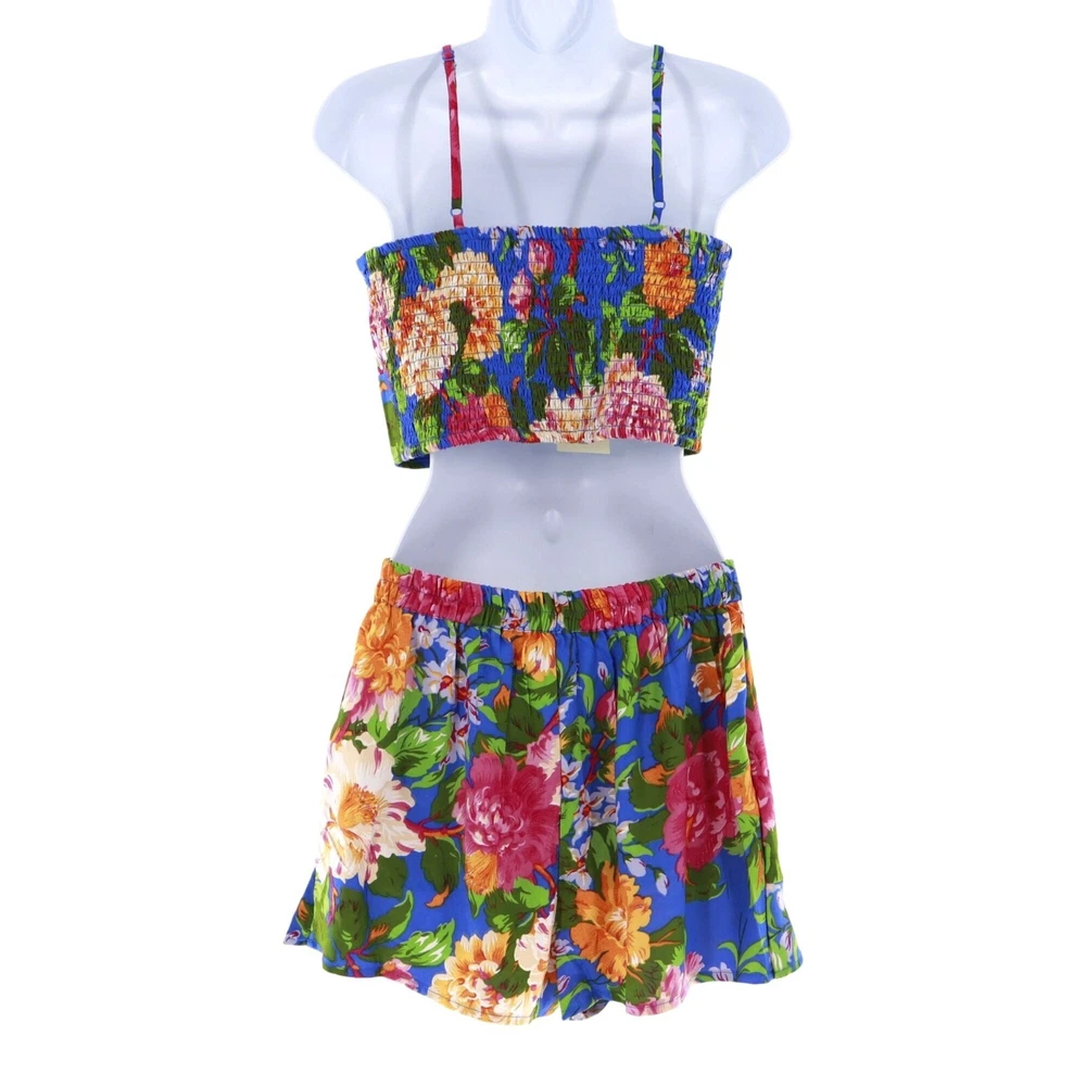 Size: M Personalize: No Fit: Regular Neckline: Sweetheart Garment Care: Hand Wash Only Type: Outfit/Set Set Includes: Skirt, Tank Closure: Pullover Size Type: Regular Occasion: Casual, Travel Handmade: No Pattern: Floral Department: Women Material: Polyester Brand: Lottie & Holly Performance/Activity: Beach Country/Region of Manufacture: India Theme: Aloha, Beach, Bohemian, Outdoor, Tropical Vintage: No Sleeve Length: Sleeveless Color: Blue Features: Adjustable Strap, Breathable, Collarless, Comfort, Crop, Elastic Waist, Lightweight, Smocked, Straps Number of Pieces: 2 Piece Season: Spring, Summer