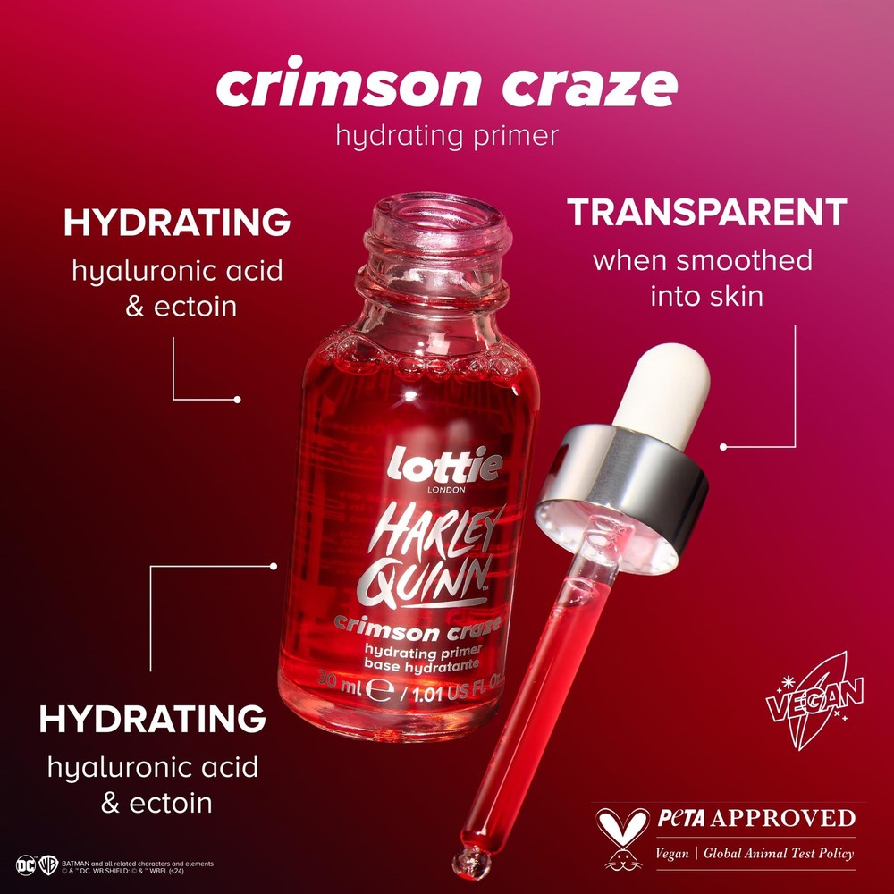 Crimson Primer Bright crimson color: hydrating formula instantly blends into the skin for a radiant, naturally glowing finish. Long-wear grip: grips makeup to ensure it stays in place all day. 100% Vegan: Always keeping it conscious, Lottie London is 100% cruelty-free, vegan & PETA certified. The innovative formulas used seamlessly blend skincare and makeup, ensuring that skin looks and feels good. Viral looks: Bringing you the latest beauty innovation Lottie London is reactive, inclusive, and affordable AF. PLEASE NOTE: Most of our cosmetics and Health & Beauty products are shelf pulls from major retailers. Their packaging may not be in perfect condition and may have label remains on the package, original seal may be broken, etc. The included photos may be slightly different from the actual product. And color may vary slightly due to photo lighting, angle, etc.