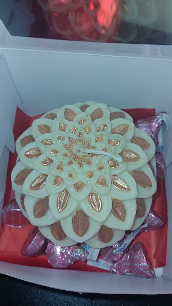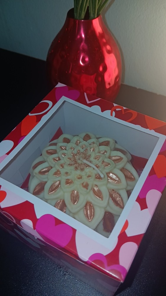 Large homemade handpainted lotus-shaped scented candle for Valentine's Day or any occasion. The candle is made of soy and paraffin wax with a citronella scent. Perfect gift for mothers day! Comes with packaging for easy gifting