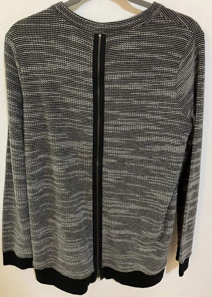 Lou & Grey Contrast Grey Static with Black Back Zip Long Sleeve Sweater M Contrast black wrists and waist line Contrast back full back zipper 38% polyester / 24% cotton / 19% rayon / 14% acrylic / 5% wool Made in Phillipines machine wash cold gentle cycle only non chlorine bleach when needed line dry cool iron if needed lightly used but wholly loved!-- Please see photos for measurements and condition details. Feel free to ask any questions or for more pictures if needed! **be sure to check out my other clothing listings for similar styles and sizes! pre owned items may show normal signs of use-- if see any stains, rips, etc., I will do my best to provide photos. do not hesitate to ask for more information if needed and feel free to combine orders to save on shipping!