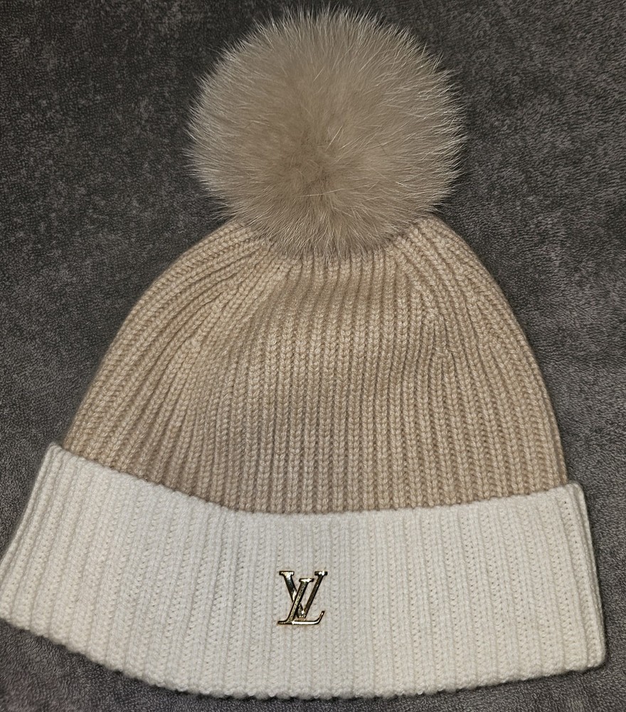 This Louis Vuitton beanie is pure luxury! The cashmere feels incredibly soft, and the fur pompom adds a chic touch. The gold LV initials give it that signature elegance, making it the perfect winter accessory to elevate any look. Warm, stylish, and totally worth it!