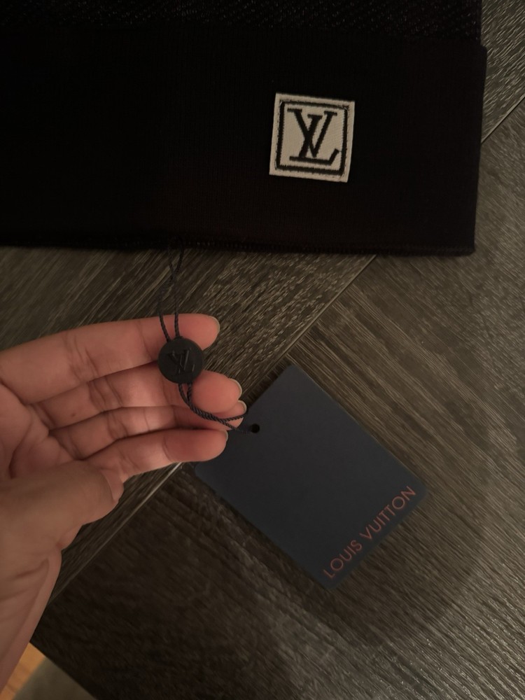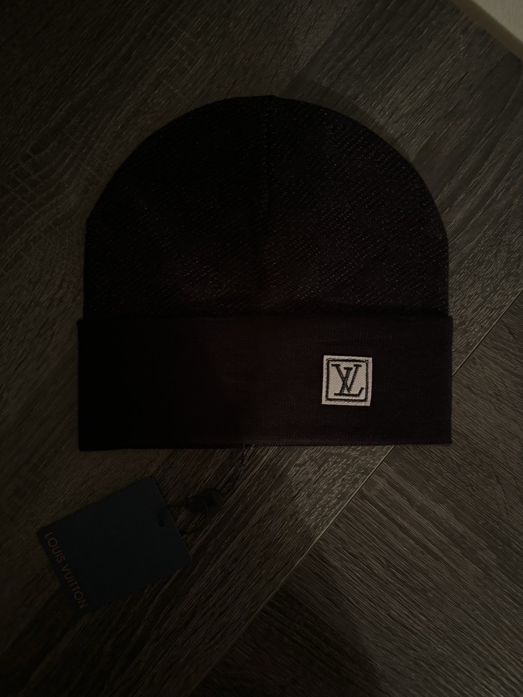 Louis Vuitton Black Beanie Casual Fashion Hat with LV Logo Patch Accent