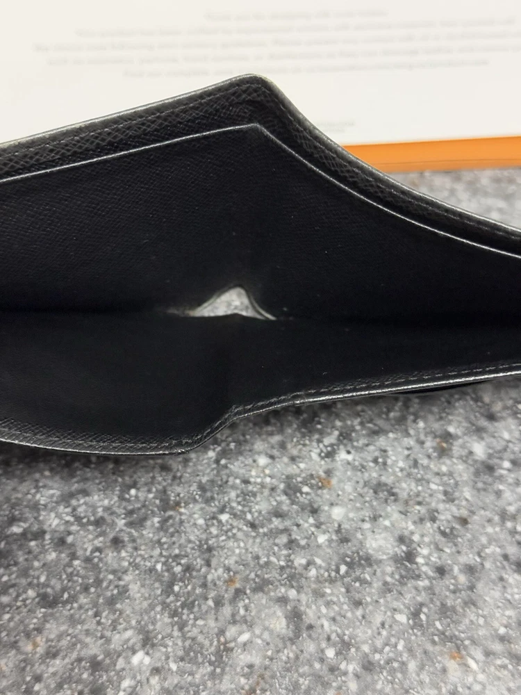 Louis Vuitton Portefeuille Black Taiga Leather Multiple Men’s Bifold Wallet This louis vuitton black multiple men’s bifold wallet is in good preowned condition! The wallet features five card slots, two pockets, and two bill slots. Very spacious! The wallet comes with its box, dust bag, ribbon, gift tag, “thank you for shopping with louis vuitton” paper, and the receipt holder. Full inclusion!!! Model Number: M30531 This wallet is still on the lv website currently selling for $630. Date Code: CT2029 Will ship the next day via usps! Please let me know if you have any questions or offers! The wallet had initials inside beside the lv heat stamp that have been rubbed out and also the wallet has some color loss on the corners from usage.