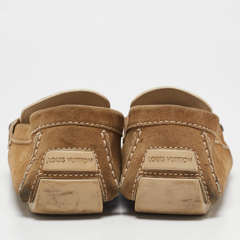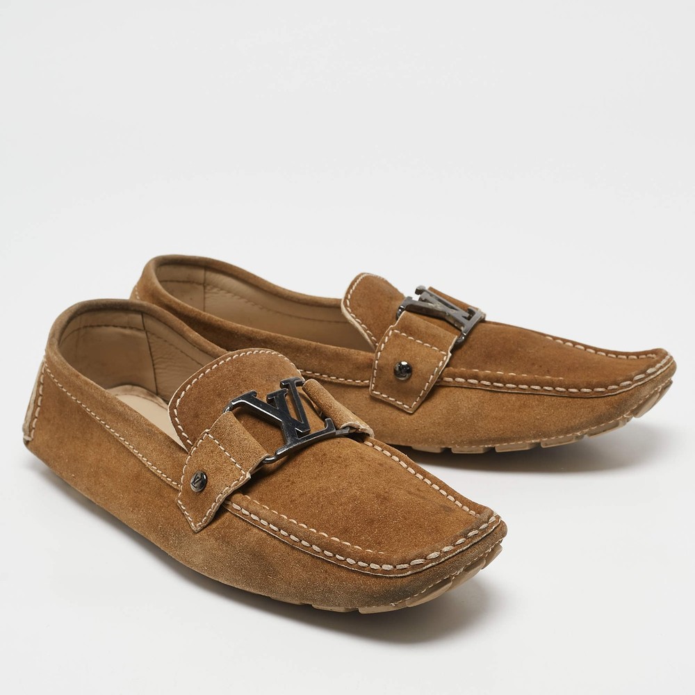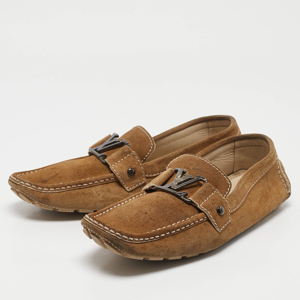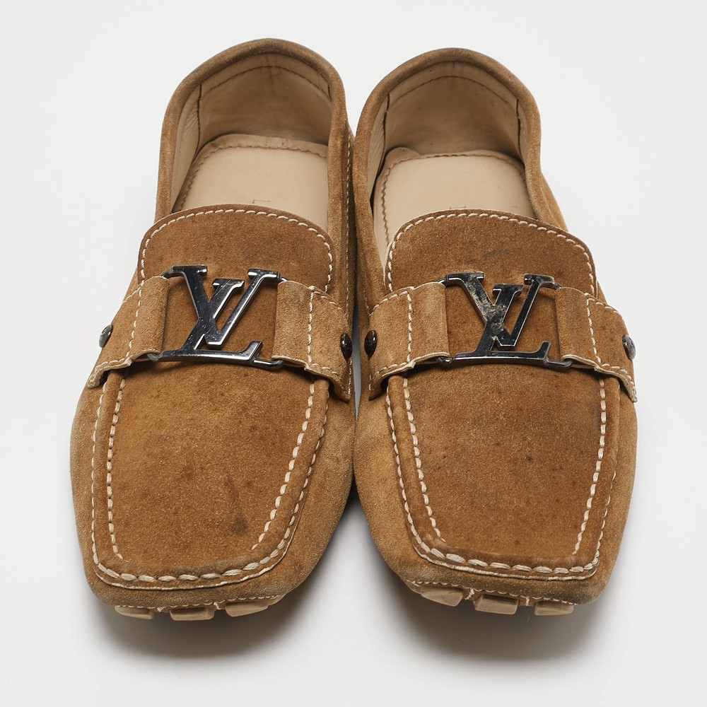 Our eBay Store About Us Contact Us Add to Favorite Sellers Louis Vuitton Brown Suede Monte Carlo Slip On Loafers Size 425 $204 Look sharp and neat with this pair of Monte Carlo loafers from Louis Vuitton. They have been crafted from brown suede and designed with the art of fine stitching and the signature LV on the uppers. The pair is complete with comfortable insoles and rubber-leather soles. Product Details Brand Louis Vuitton Color Brown Includes The Luxury Closet Packaging Outsole Length 30 cm Outsole Width 9.5 cm Size UK 8.5 (EU 42.5/US 9.5) Certified by The Luxury Closet This item has gone through a detailed authentication process overseen by our experts. We offer a lifetime guarantee of authenticity on all our items. How We Check The in-house team of experts at The Luxury Closet is highly trained to verify the authenticity and the condition of the luxury products. They ensure that only 100% authentic items are put on sale.The evaluation process is unique with its own mix of assessment criteria and differs according to the category. Each item is evaluated based on the following combination of hallmarks, hardware, stitching, symmetry, material, craftsmanship, stamping, codes, hologram stickers, and packaging. Our authenticators also check if the items have been modified or amended (e.g., aftermarket diamonds, replaced batteries, repaired bags, etc.) International Buyers Import duties, taxes and charges are not included in the item price. These charges are the buyers responsibility. Please check with your country’s customs office to determine what these additional cost will be prior to buying.
