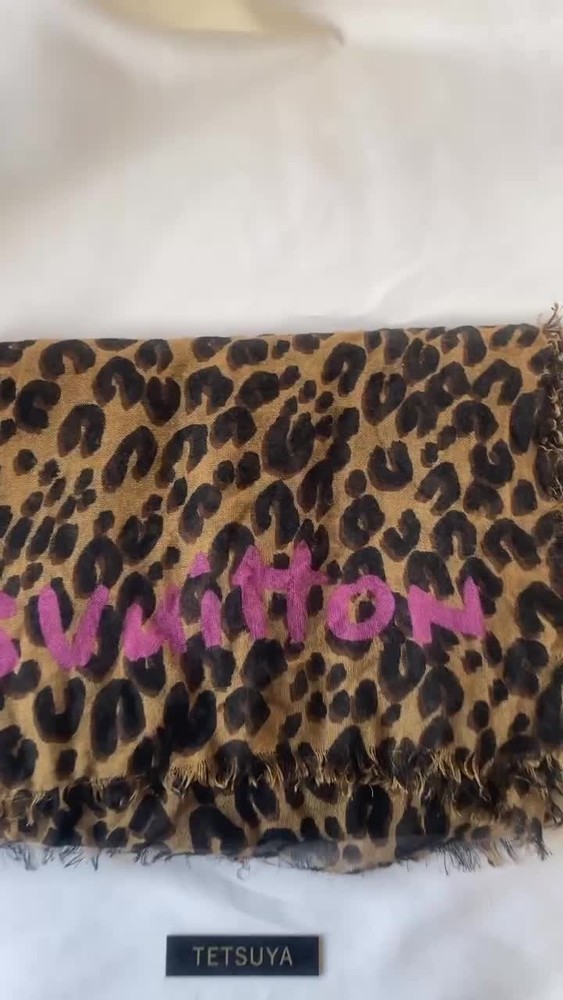 Louis Vuitton Etoile Leopard Scarf M72215 Monogram Wool Silk Blend