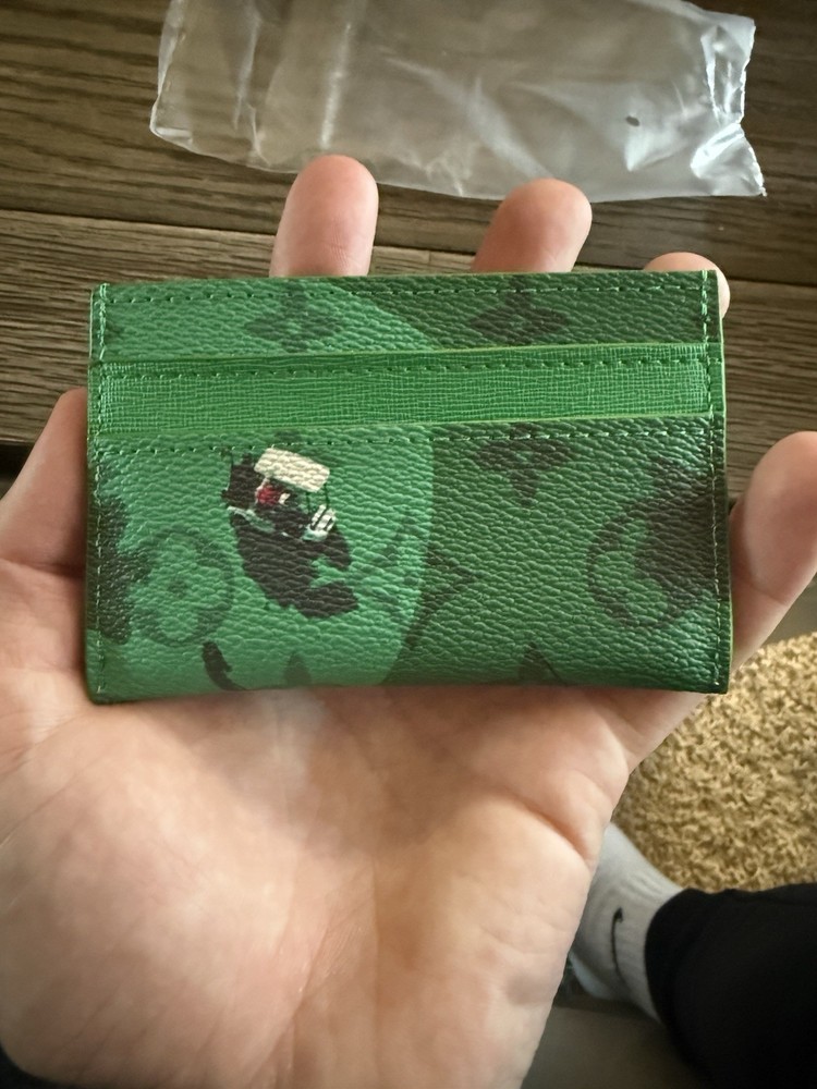 Louis Vuitton Green Double Sided Card Holder Wallet Logo Printed Design