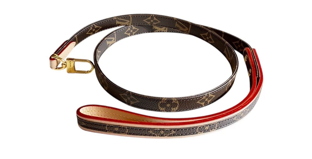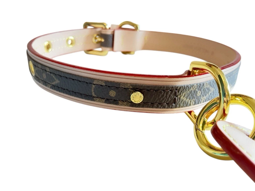Louis Vuitton Monogram Baxter Collar & Leash Pet Set M58072 •Brand New in Box Signature Brown & Cream LV Monogram with Classic Red Detailing Collar Measures 18.5” L with holes from 12.5”-16.5” (animal neck size) and 3/4” W Leash Measures 43” L and 3/4” W