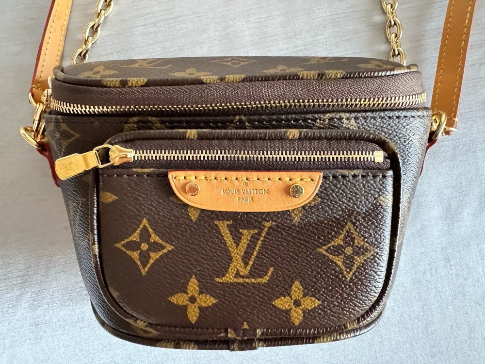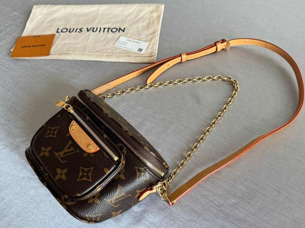 The Louis Vuitton Mini Bumbag M82335 Monogram Canvas is a stylish and compact belt bag designed for women. Made of durable canvas material with the brand's iconic monogram pattern, this brown bag is perfect for on-the-go use. With a mini size, it offers just enough space for essentials while adding a touch of luxury to any outfit. The belt bag style allows for easy wear and convenient access to your belongings, making it a practical and fashionable choice for everyday use. Bag does have original tag attached, however does not have original box. Mint new.