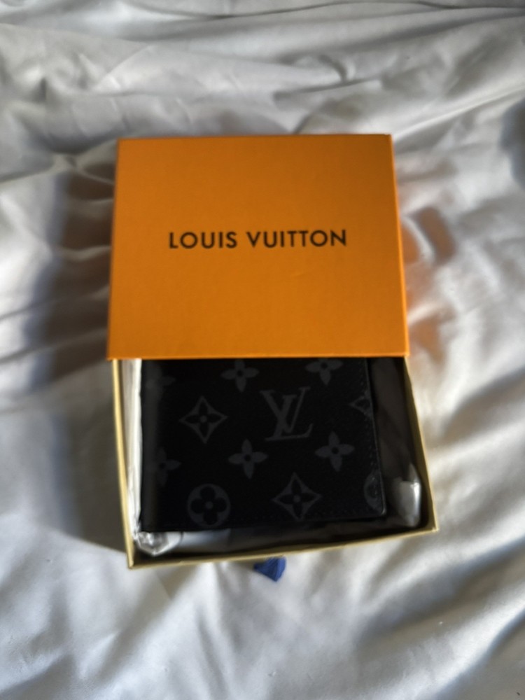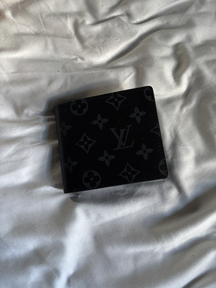The Louis Vuitton Monogram Eclipse Canvas Wallet Card Holder is a stylish and sophisticated accessory designed for men. Made from black leather with the classic Louis Vuitton logo accents, this wallet features multiple credit card slots for organization and style. This sleek and versatile piece is perfect for any man looking to add a touch of luxury to their everyday essentials.
