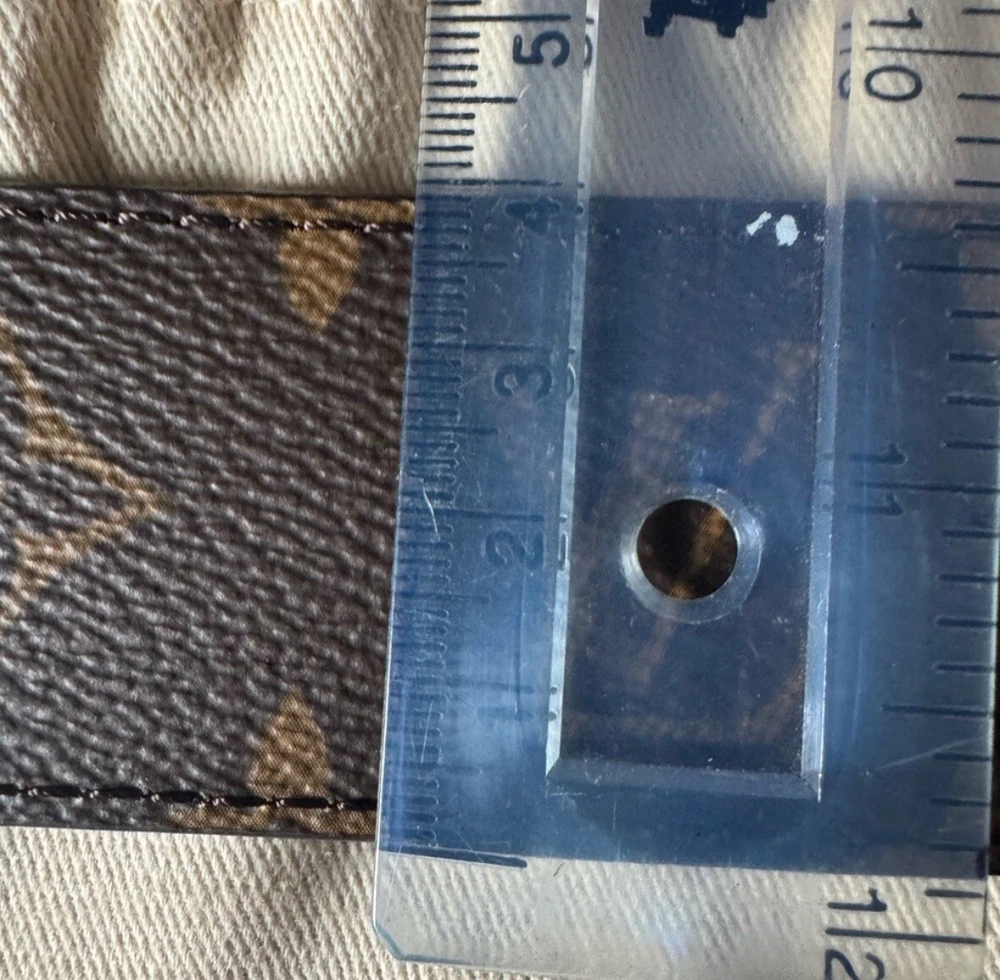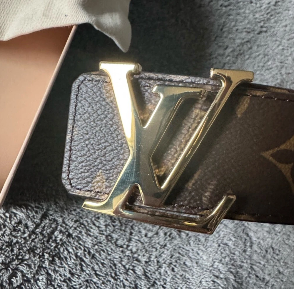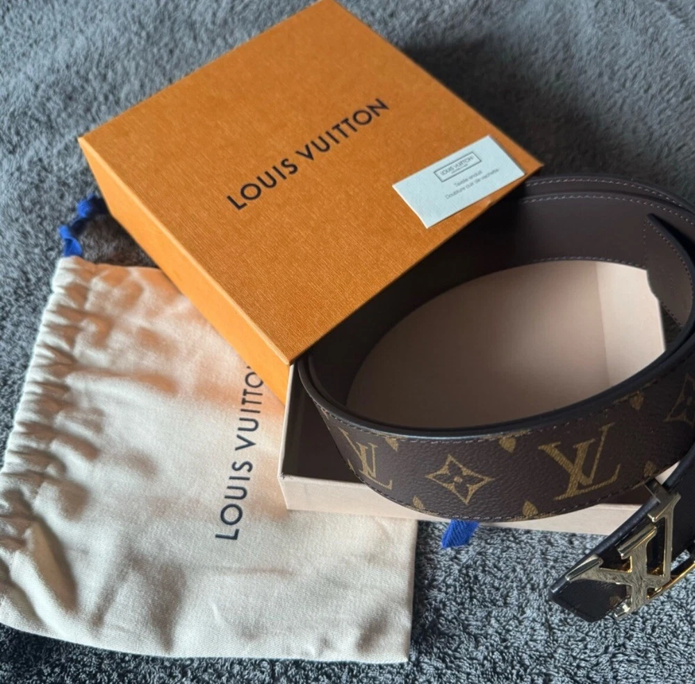 Authentic LV 40mm, size 44 belt. No sign of wear on the buckle or the sizing holes. Thank you for checking this out and please feel free to ask anymore questions. The Louis Vuitton Monogram Initials 40mm Reversible Belt is a stylish accessory for men featuring a monogram print on brown leather. The belt is 40mm wide, size 40 / 110cm, with gold color hardware accents on the buckle. It is designed with the signature Louis Vuitton monogram pattern, adding a touch of designer luxury to any outfit. Additionally, this belt offers a reversible feature, making it versatile and adjustable for various looks. Crafted in France, this accessory exudes sophistication and elegance for the modern man.