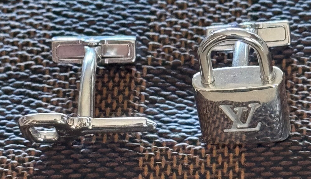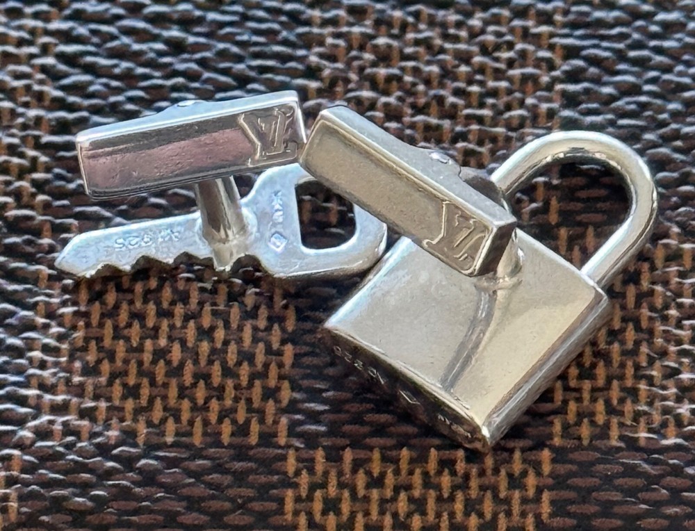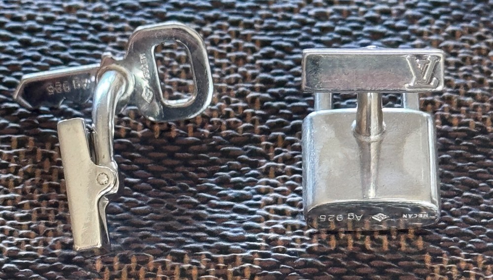 Louis Vuitton Cufflinks Padlock & Key Design. Sterling Silver 925. No box or pouch. All Our Louis Vuitton Items are Authentic.