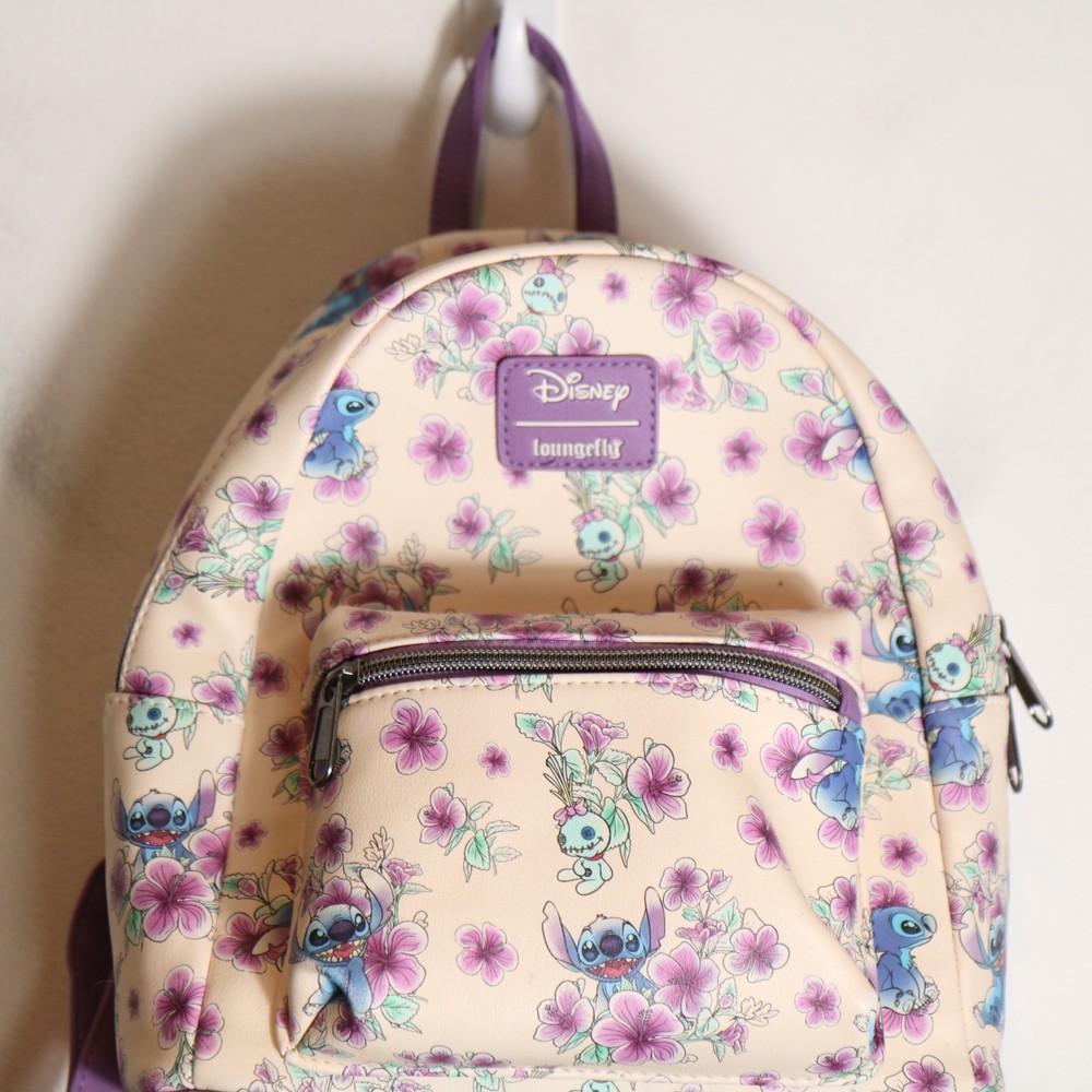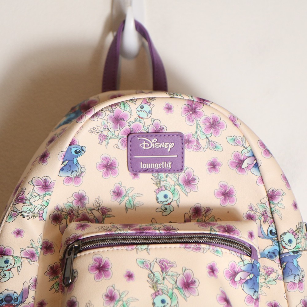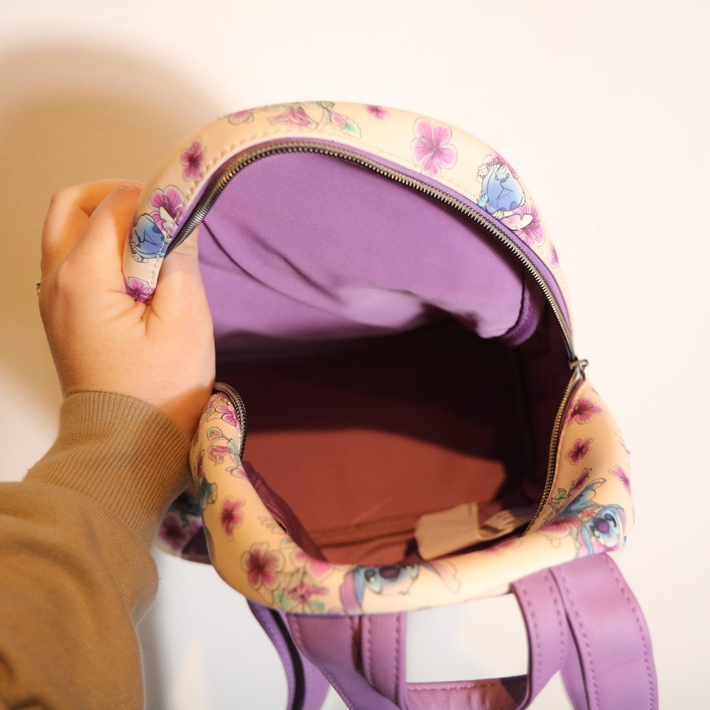 HomeLoungefly Disney Mini Backpack Lilo & Stitch Hibiscus Flowers Purple Tropical