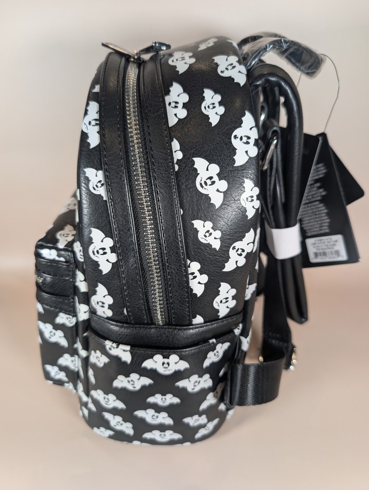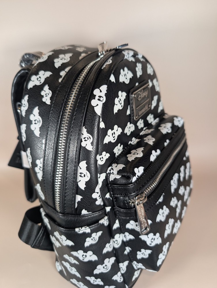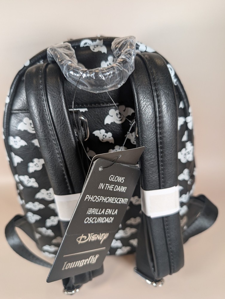 Brand new with tags! It’s the perfect Disney adventures and Halloween rave nights mash-up! Totally exclusive and totally cute, Loungefly x Disney x LASR are back in the lab again bringing to life an Exclusive Glow in the Dark Mickey Mouse Bat Mini Backpack! This official Loungefly mini backpack features a LASR exclusive all over print of glow in the dark Mickey bats for the Disney cosplayer frequenting Mickey’s not-so-scary Halloween party! With a versatile black color palette, front zip pocket, and side pockets for extra storage, this sleek glow-in-the-dark backpack is perfect with any festival outfit, rave outfit or horror night. X LASR Exclusive Disney Totally Batty Mickey Bat AOP Mini Backpack Width: 8" x Height: 8" x Depth: 4" Faux leather Glow-in-the-dark all over printed detail Top zipper closure Top handle From a smoke-free, pet friendly home. All my bags are stored in a temperature controlled room. I ship quickly and package your item with care. Thank you!
