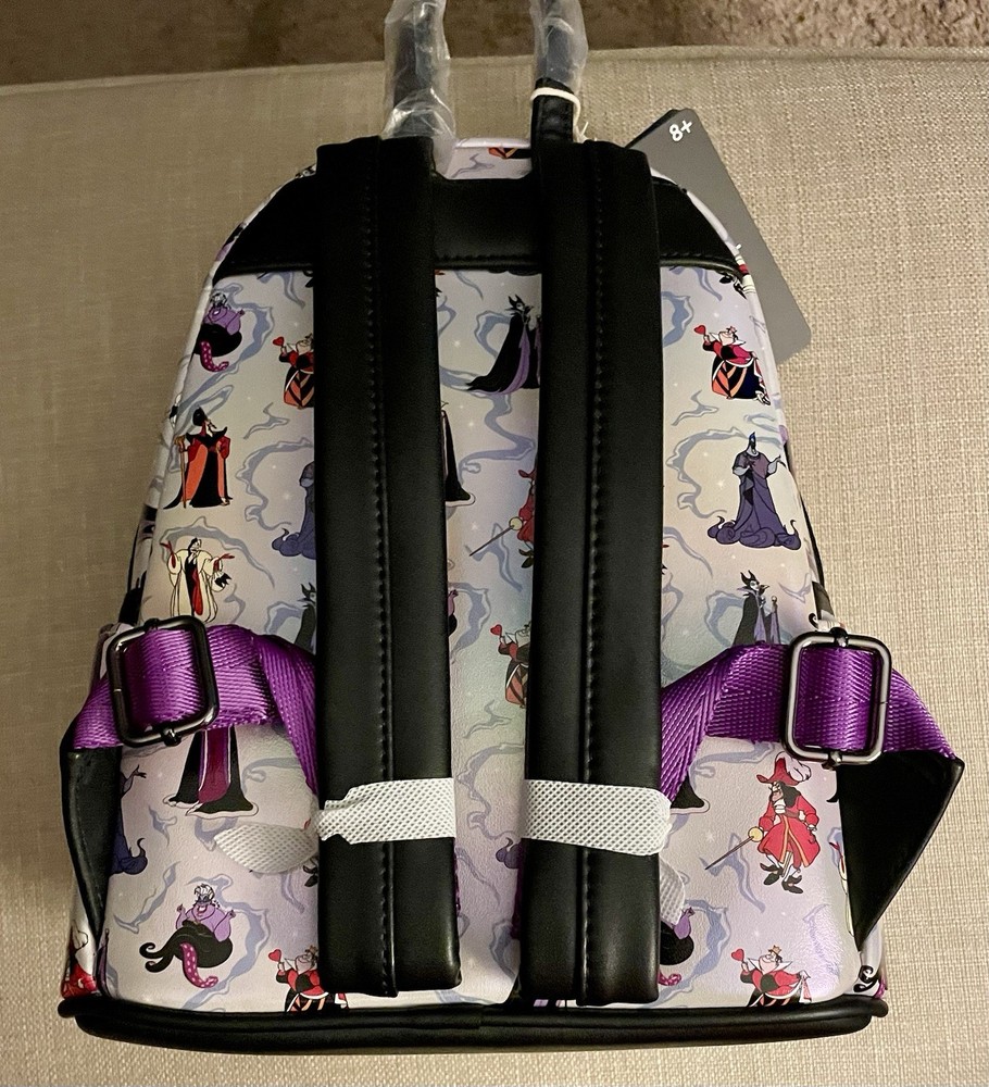 The Loungefly mini backpack with an iridescent finish featuring evil villain designs is a trendy and stylish accessory for women. Made from faux leather, this multicolor backpack is not only practical but also adds a touch of personality to any outfit. Perfect for those who love a bit of edginess in their style, this backpack is sure to make a statement wherever you go.