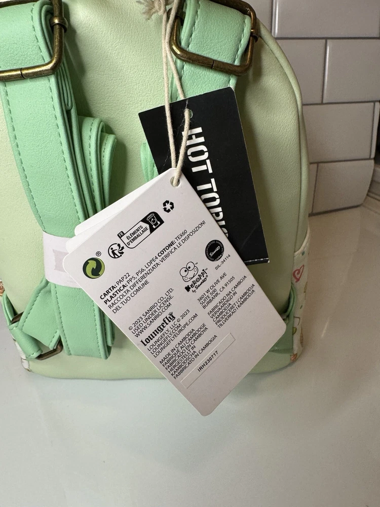 NWT Loungefly Sanrio Hello Kitty & Friends Keroppi & Snacks Mini Backpack. Soft tag. Please note, there is a mark under the backpack as see in photos. Please see photos.