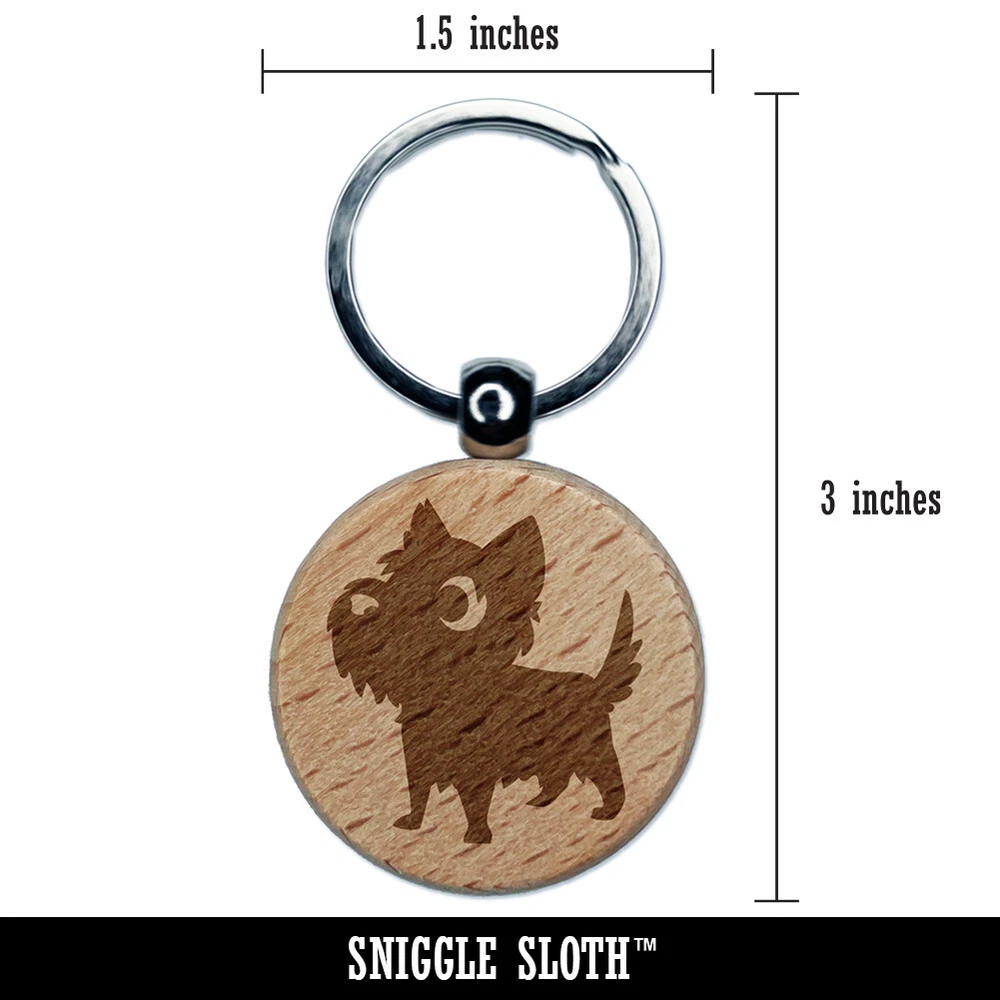 Lovable Cartoon Cairn Terrier Engraved Wood Round Keychain Tag Charm