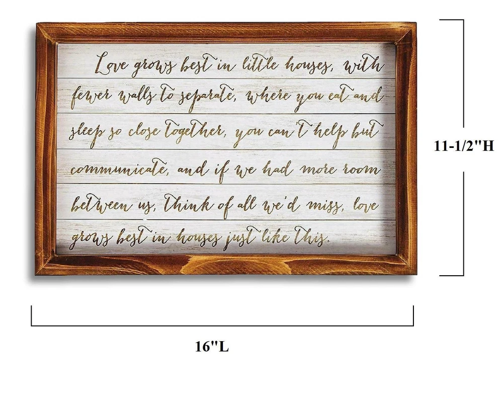 Love Grows Best in Little Houses Poem Framed Wooden Wall Decor 16"Lx11.5"H #676