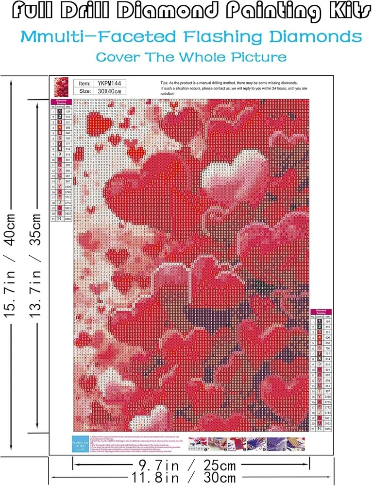 Love Heart Diamond Art Kits for Adults, 5D Diamond Painting Kits for Adults Begi 【5D Diamond Painting Kits for Adults】Each love heart diamond art kits comes with all tools in need. Following tools are Included: 1*HD painting canvas, 1*diamond pen, 1*cube diamond tray, 1*red glue clay (2cm *4cm), 1*pen grip, 10*plastic bags for putting diamonds, and enough colorful round diamonds. For each diamond dots kit we'll provide 20% diamond more than need. 【Have More Fun】DIY valentines day diamond painting is a good choice not only for family time, but also for party time with friends and your loved ones. It’s a nice way to reduce stress for adults to improve their hands-on ability. We believe that the heart diamond art kits for adults beginners can be an adorable present also. 【Decorations for Home】Decorated with this love diamond art painting, your bedroom, living room, study or office can be more colorful and make your staying in these places more enjoyable. The scenery on adults diamond painting may encourage you and make you feel great all day. 【HD Diamond Canvas】Numbers and symbols of this kit on the HD canvas are clear and easy to read. We believe you will definitely love your this paint when finishing this work.