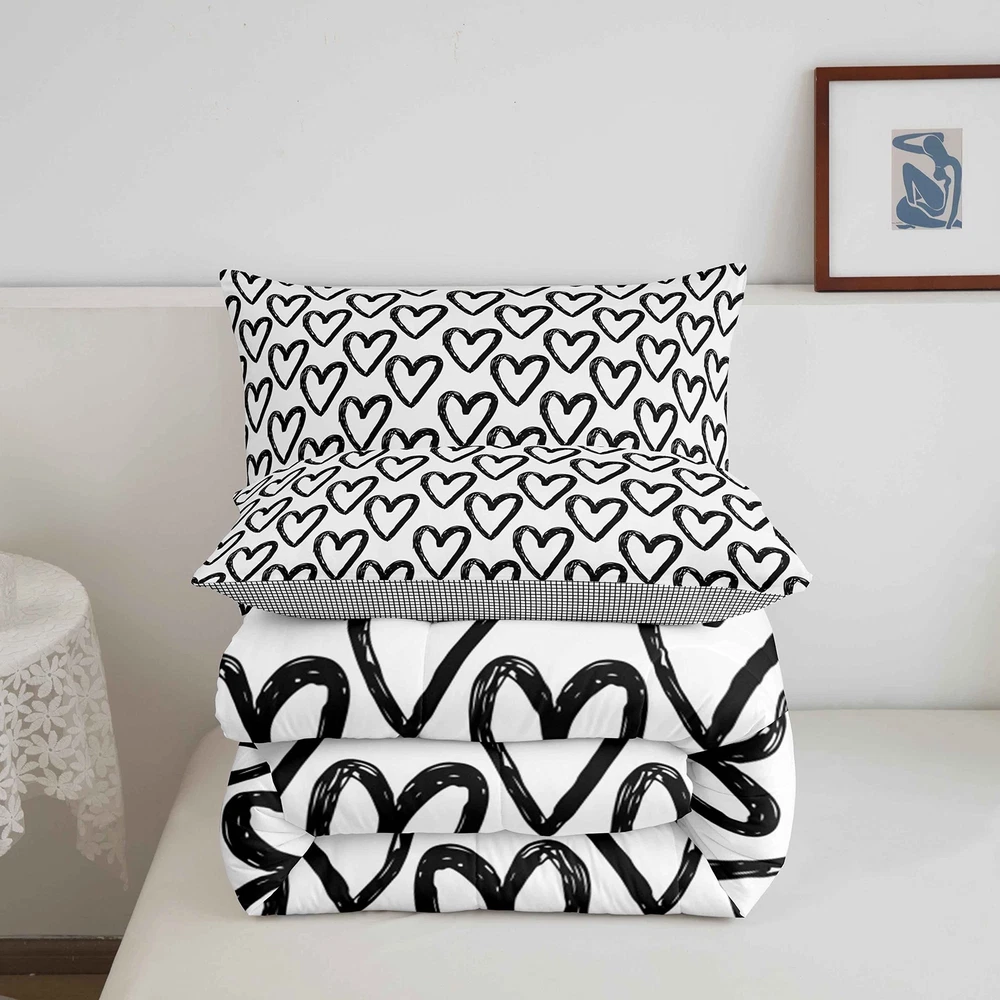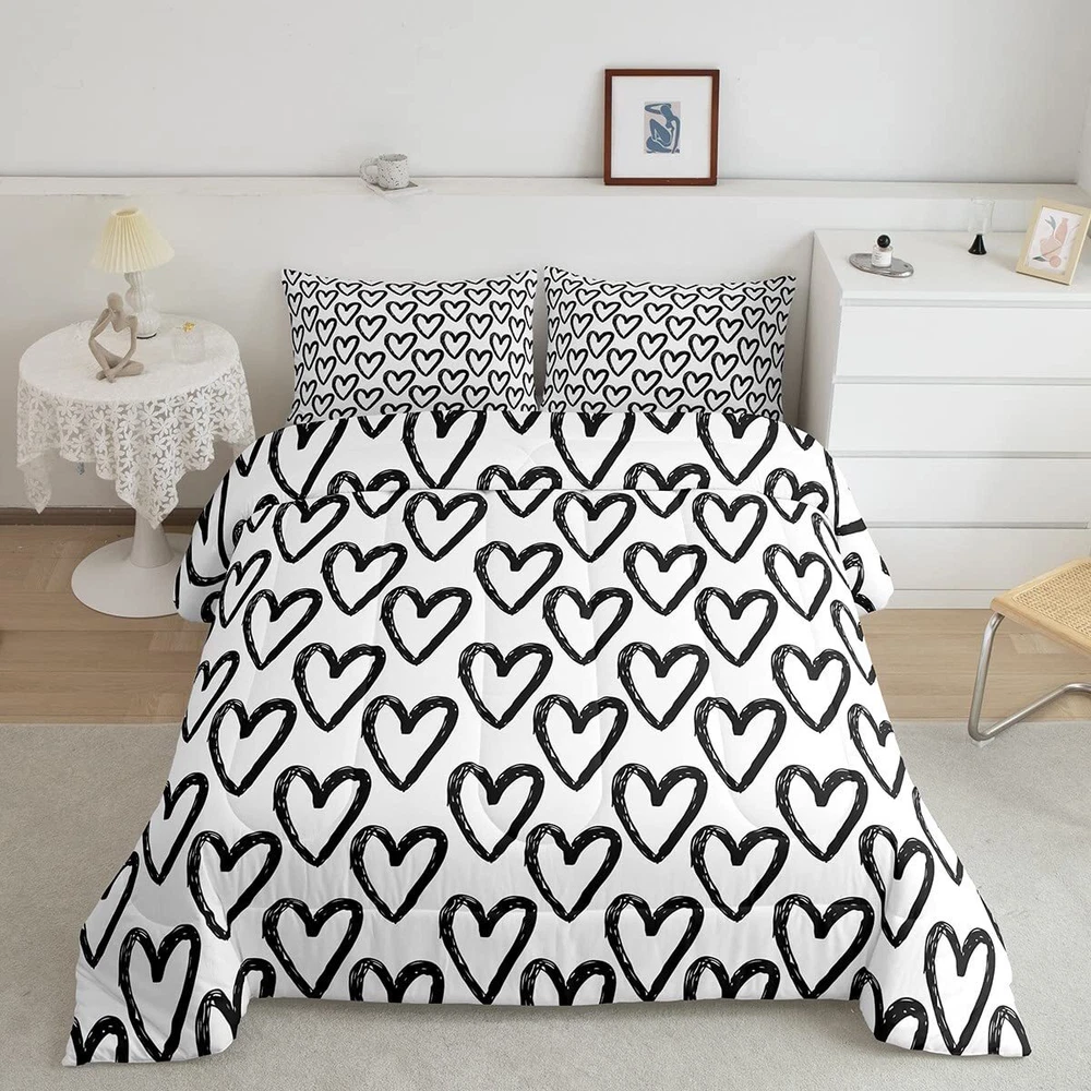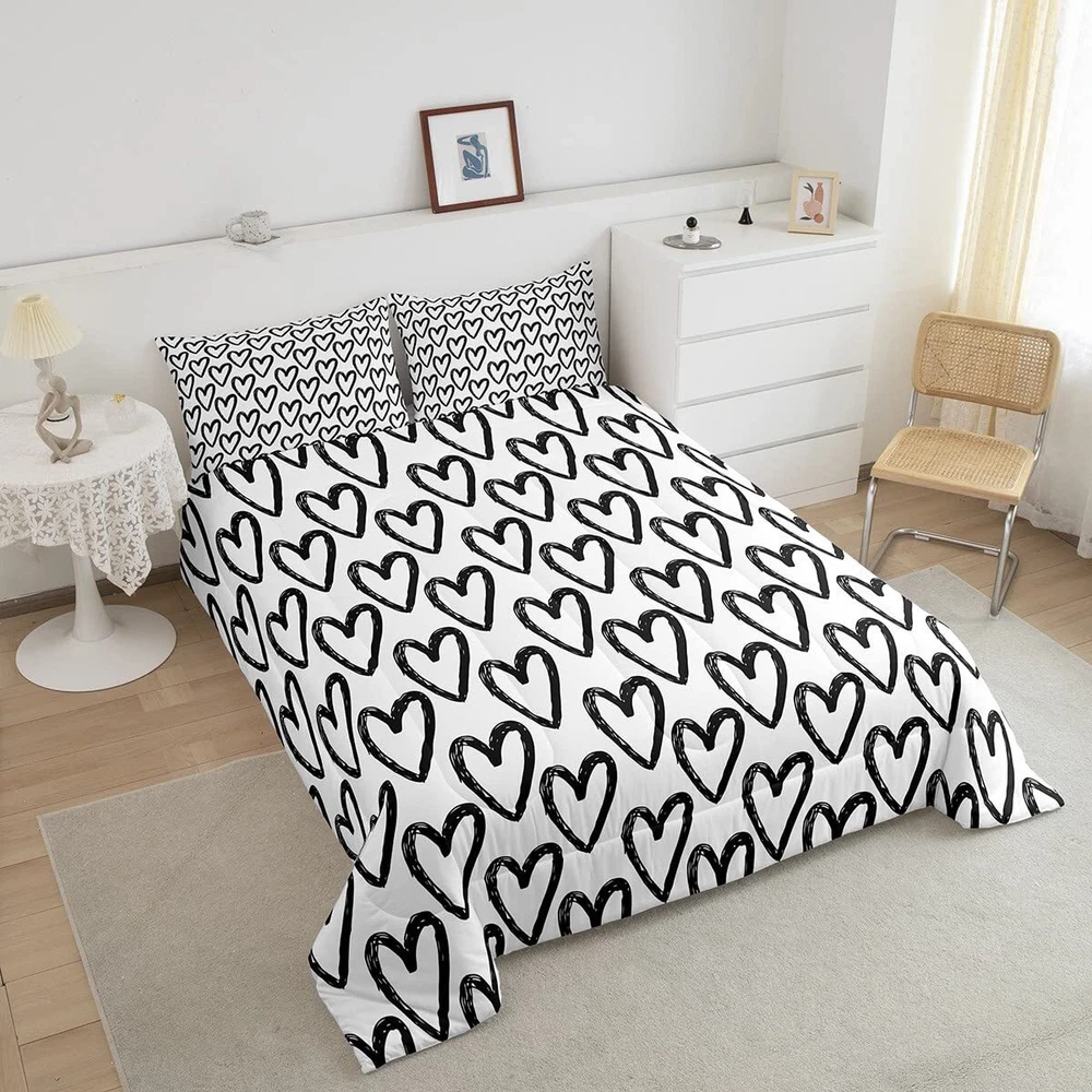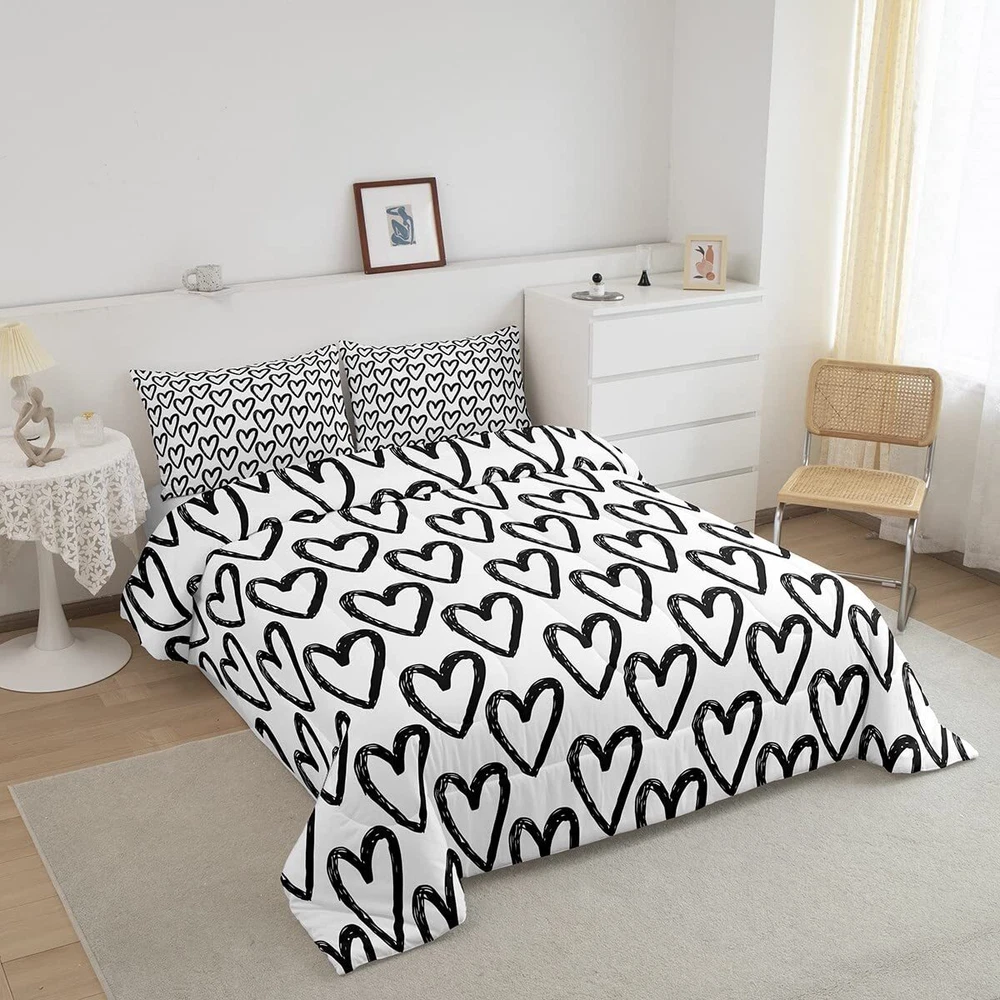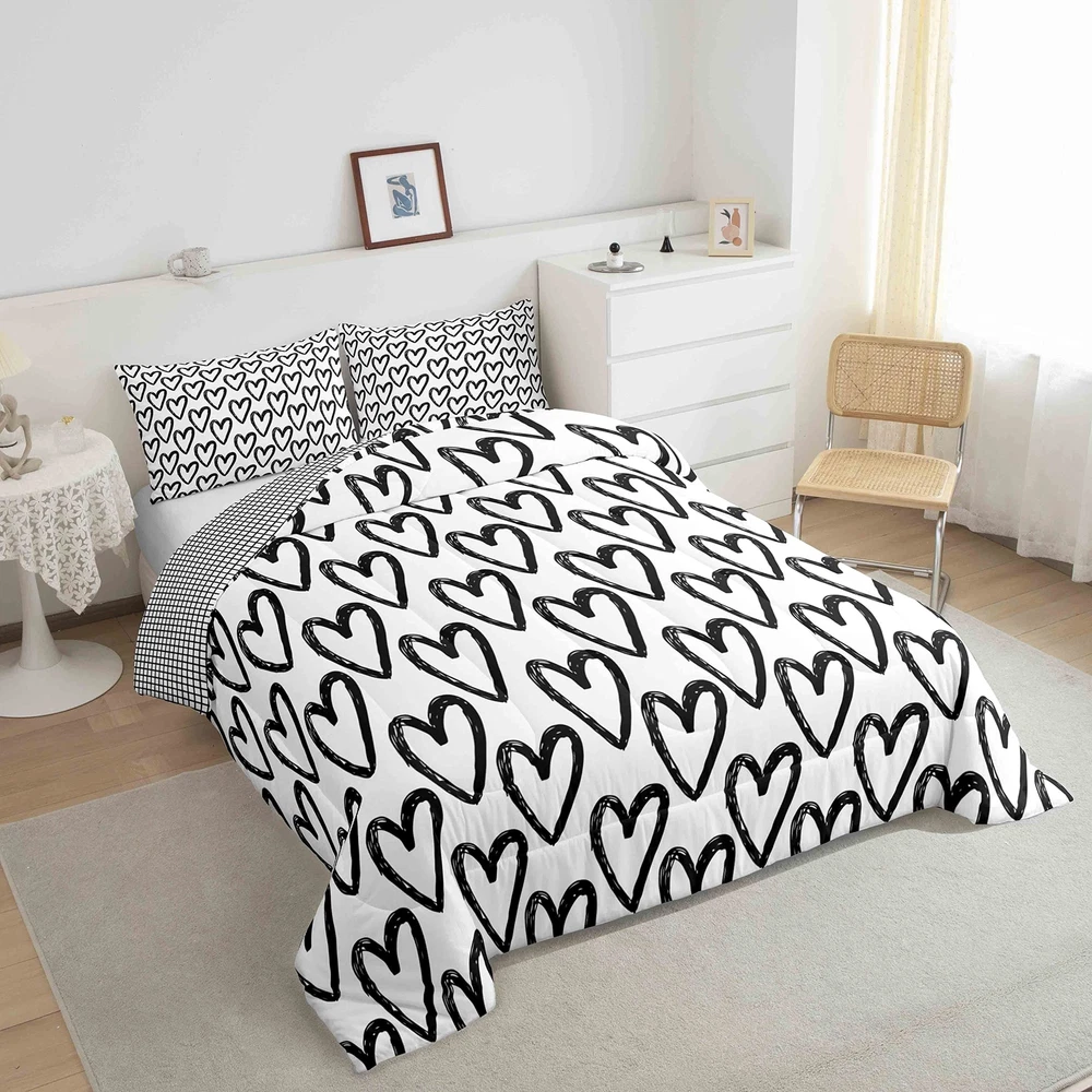 Love Quilt Heart Shaped Bedding Sets,Black and White Lattice Plaid Comforter ...