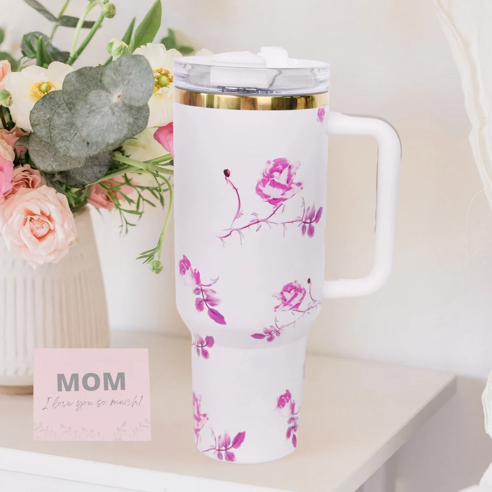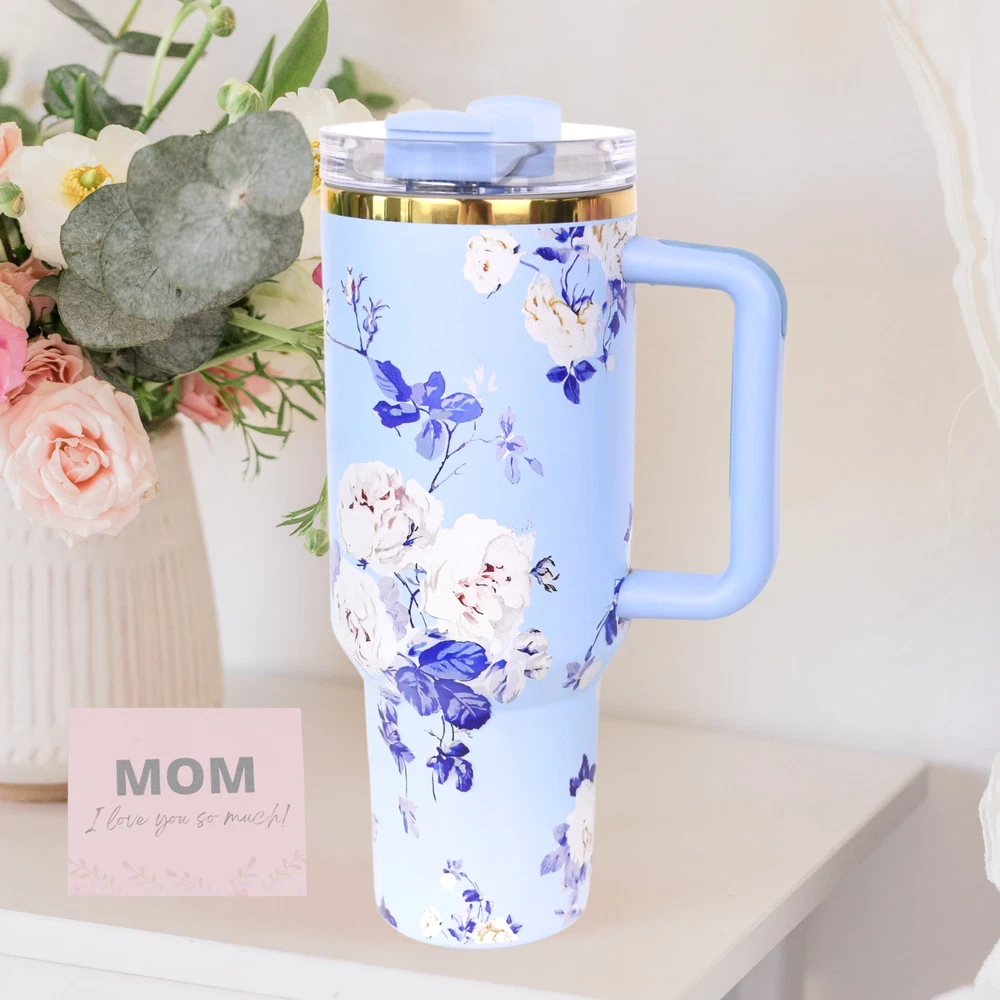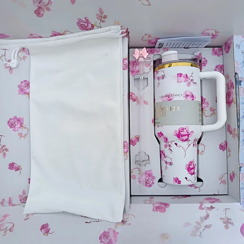 🌸 Fancy 40oz Floral Tumbler Gift Box for Her 🌸 Looking for the perfect gift that blends style and functionality? 🎁 Gift-Ready: Comes beautifully packaged in a chic gift box, making it the perfect choice for: Mother's Day Birthdays Anniversaries Christmas Item Details: You will receive one 40oz Double wall Tumbler with a built-in handle, a reusable plastic or metal straw, a plastic screw-on lid, and a Cup Care card. This tumbler fits standard-size cup holders. Can be used for hot and cold drinks. This tumbler is the ideal gift for any occasion or event. This is infused into the tumbler and is not removable or vinyl and it has no epoxy. IT IS PERMANENT. Care instructions for longevity: - HAND WASH ONLY - Gently wipe with warm soapy water & rinse. - DO NOT SOAK - DO NOT SCRUB - Not dishwasher-safe - Not microwave-safe Due to the personalization of these Tumblers, they are nonrefundable or exchangeable. If you incur an issue with your product, please contact me I would be happy to help you! The design on this tumbler is permanent, meant to hold up under washing, condensation, etc. Once the tumbler is designed it is not dishwasher safe and shouldn’t be soaked for long periods. Handwashing is the best way to care for the Tumbler. S H I P P I N G • T I M E S • Our items are individually made with love for each of our buyers. Because of this, our processing time is 4-7 business days (depending on order volume) plus transit time, but typically much faster. We know our customers want their items as quickly as possible!. Please note that processing time does not include shipping time 7-9 arrive to destination • QUESTIONS • Message me! I’ll get right back to you as quickly as I can! SATISFACTION GUARANTEE: • If your purchase does not arrive to you in the allotted shipping time you select at checkout, or the item is defective/damaged, we will fully refund your order or ship a replacement to you immediately. PACKAGING; Our Tumbler are expertly packaged to ensure that you will receive your item in perfect condition. THANK YOU FOR TRUSTING US!