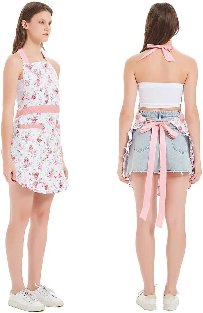 Made from premium cotton fabric, this lovely women cooking apron is machine washable, fade-proof, durable, soft, lightweight and comfortable 30" x 27" plus size apron provides great coverage. With an 22” long adjustable neck strap and 41.5" long ties that can be tied in front or back, this cute kitchen apron can be easily altered to fit most sizes Apron for women with 2 pockets can give you an amply place to hold into seasoning packets, meat thermometer, grill slips, recipe cards, pen and cell phone All edges of this lady kitchen apron are professionally hemmed. Besides the pockets & ties are reinforced for longevity Comes with an exquisite packaging, this unisex black and white pinstripe apron is absolutely a great gift for your father, mother, wife/husband and friends