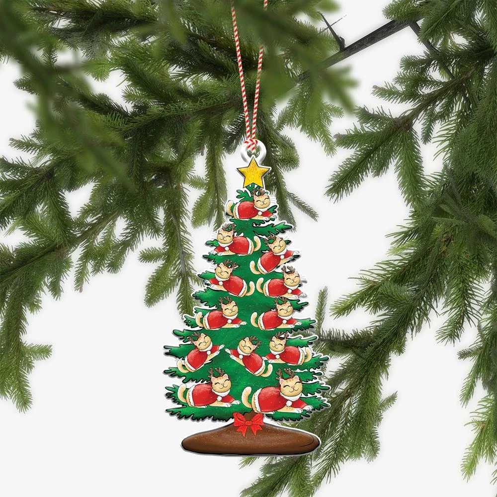 Lovely Cat Christmas Tree Flat Ornament Funny Cat Xmas Car Ornament Gift Decor