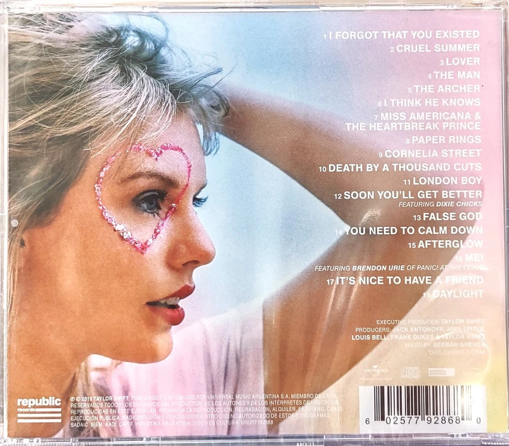 This CD features the latest album from Taylor Swift, titled "lover." It was released in 2019 under the label Republic Records. The multicolor album showcases Swift's vocal style and includes songs like "Shame on You" and "I Love You." The CD format is perfect for music lovers who appreciate the traditional way of listening to music. It was manufactured in the United States and is a must-have for Swift fans.