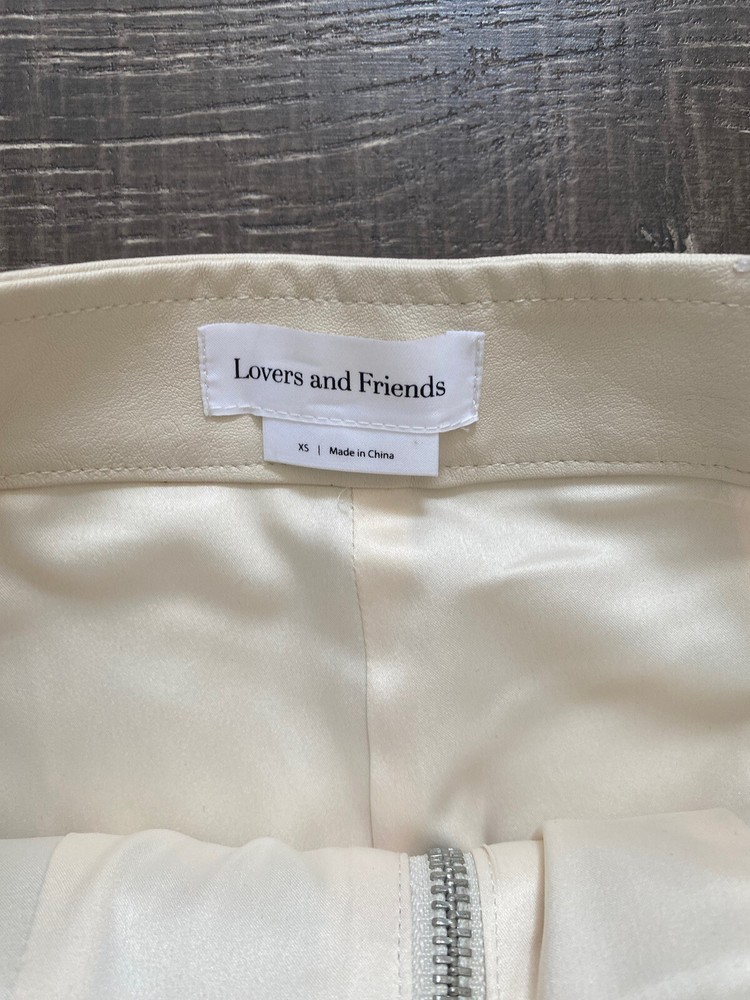 Add some edgy style to your wardrobe with these Beige Faux Leather Pants from Lovers + Friends. These slim-fitting pants are perfect for any occasion, whether you're dressing up for a party or heading to a business meeting. The front features a flat design with a zipper accent, while the back offers a solid pattern that looks amazing from any angle. The pants feature a high-rise waist and a straight leg design that flatters your figure and elongates your legs. They're made from faux leather that looks and feels amazing, and they're easy to care for with a simple hand wash. These pants are perfect for any season, whether you're looking for a stylish addition to your winter, fall, or spring wardrobe. Condition of the item is Pre-Owned in great shape! Shipped asap by USPS First Class Mail.