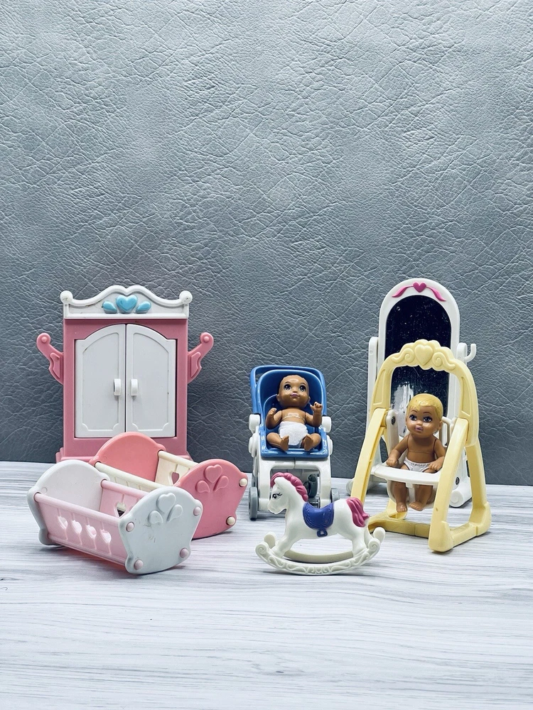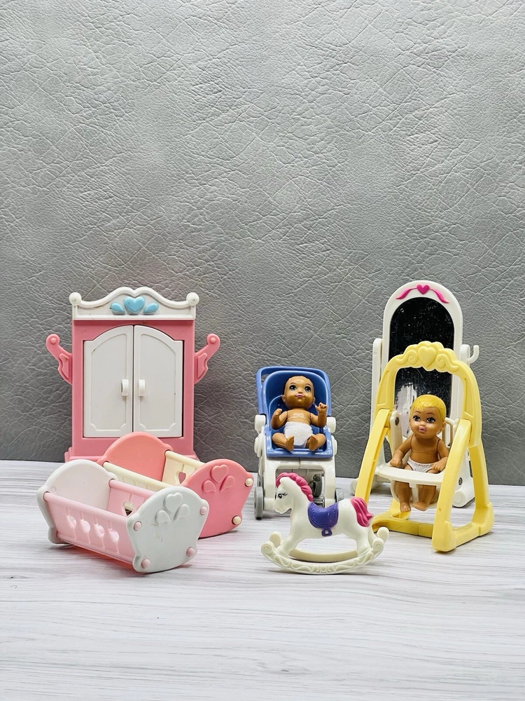 Fisher-Price loving family vintage dollhouse furniture and baby a lot consisting of nine pieces. Exact items in the photos are the exact items you receive. All items are in good condition. All of our items come from a smoke-free and pet free environment. Please visit our store to view more items like these.