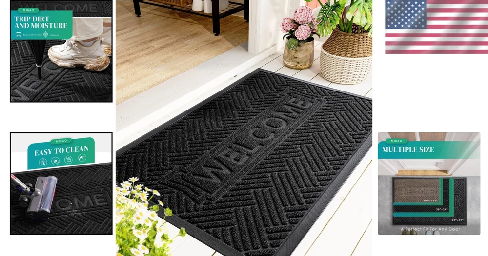Room: Any Room, Hallway, Entryway, Patio, Porch, Garage, Living Room Type: Doormat Weave: Machine-Woven UPC: Does not apply Brand: Unbranded Indoor Outdoor Usage: Both Department: Adults, Teens, Kids gtin13: Does not apply Is Autographed: No Pile Type: Low Pile Item Thickness: 0.25 Inches Pile Height: Low Construction Type: Machine Made Pattern: Geometric Style: Outdoor & Indoor Color: Black Occasion Type: Welcome Rug Form Type: Doormat Water Resistance Level: Waterproof Era: 21st Century (2000-Now) Product Care Instructions: Spot Clean Only Size: 47 x 32 in Is Stain Resistant: Yes Item Dimensions L X W: 47"l X 32"w Room Type: Hallway Is Electric: No Back Material Type: Rubber Personalize: No Material: Polypropylene, Rubber Special Features: Non Slip Personalized: No Weave Type: Machine Made Theme: Welcome Shape: Rectangle Item Shape: Rectangular Features: Non-Slip, Waterproof, Stain Resistant, Easy to Clean