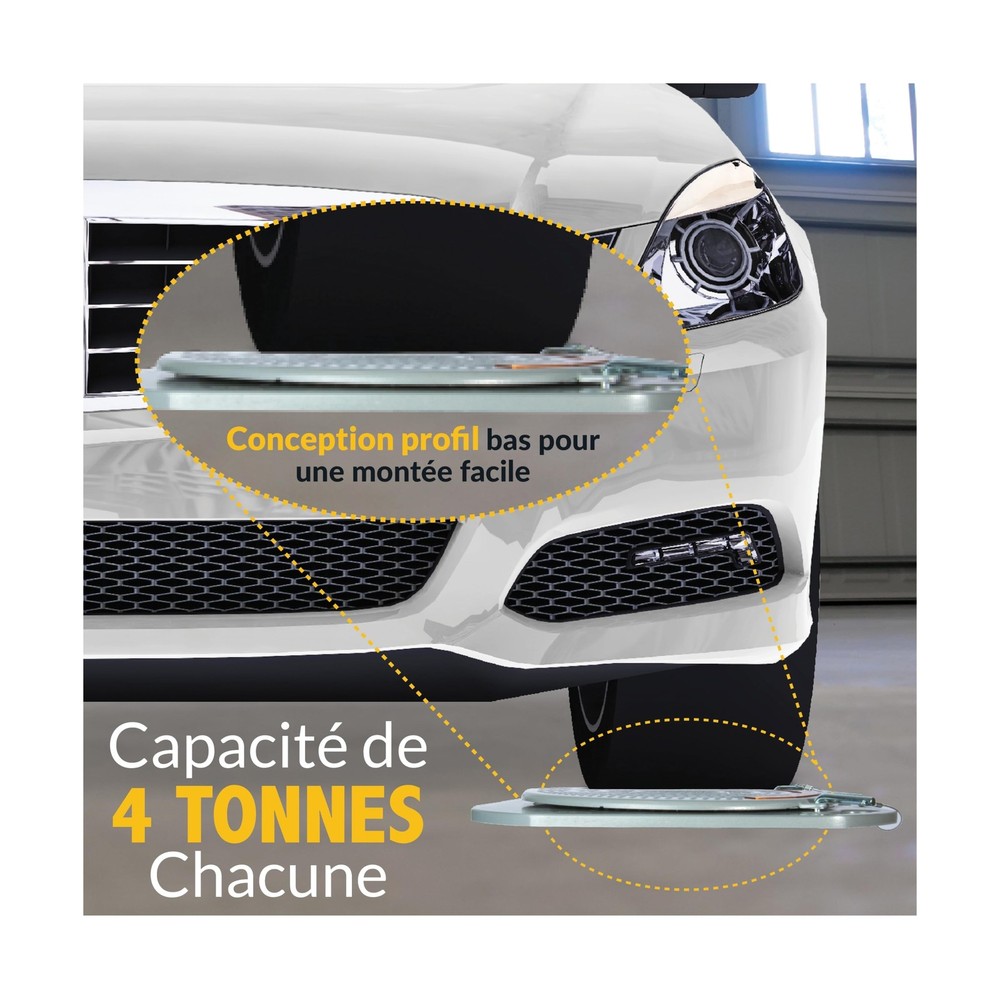 Low Profile Wheel Alignment Turn Plates - 4-Ton Capacity Per Plate, Brass Dial Measurements, and Bonus Accessories - Essential Addition to Any at Home Car Alignment Tool Kit Description Features: ESSENTIAL ACCESSORY TO ANY DIY WHEEL ALIGNMENT KIT: AutoSolo's wheel turn plates are a must-have accessory for any wheel alignment task. Designed to offer frictionless front wheel rotations to deliver precise and accurate alignment for automotive professionals and enthusiasts, these alignment plates ensure optimal performance in every scenario. The Low Profile design enhances ease of drive-on, making them ideal for vehicles with limited clearance. HEAVY-DUTY LOAD CAPACITY: Each alignment tools automotive turn plate supports up to 4 tons, with a pair capable of handling up to 8 tons when weight is evenly distributed. However, due to safety and liability purposes, we can only recommend a maximum load of 4 tons per pair. BRASS DIAL: Our wheel alignment tool provides incremental measurements at 1-degree intervals. This feature allows for up to 60 degrees of rotation left and right, ensuring a free range of adjustments. DESIGNED FOR COMPATIBILITY: The wheel alignment plates feature a 1-inch offset from the centerline, ideal for accommodating wheel movement during turns. This design enhances the compatibility of different vehicles for the accuracy and efficiency of alignment tasks. DURABLE CONSTRUCTION: Crafted from heavy-duty metal using die-cast injection, our alignment turn plates are built to last. The brass dial and powder-coated finish ensure durability and resistance to wear and tear. ENHANCED MOBILITY: Equipped with handle slots, these wheel alignment & balancing tools are easy to maneuver and position under any vehicle, streamlining the alignment process. SECURE LOCKING MECHANISM: Heavy-duty locking pins ensure the plates stay in place during alignment, providing stability and safety for both the user and the vehicle. COMPACT & PORTABLE: Measuring 15.75" x 15.75" x 1" and weighing 27lbs, our alignment turntables are compact for easy storage and transport, making them a versatile addition to any auto repair kit. BONUS ACCESSORIES INCLUDED: Enhance your alignment capabilities with two wheel chocks and two transition bridges, included with every purchase. These accessories further simplify the wheel alignment process. OPTIMAL FOR ALL SETTINGS: Whether in a professional auto shop or a home garage, AutoSolo's Wheel Alignment Turn Plates are the perfect tool for achieving precise wheel alignment and balancing, ensuring optimal vehicle performance and safety. Product Details: Manufacturer: AutoSolo Brand: AUTOSOLO Model: Low Profile Alignment Turn Plates Item Weight: 26 pounds Product Dimensions: 15.75 x 15.75 x 1 inches Item model number: ASWG004 Manufacturer Part Number: ASWG004 Date First Available: January 19, 2024 Delivery We Do Not Ship Outside of the Continental US. Return Policy All items qualify for returns within 30 days of receipt. Seller is responsible for return shipping on any item that is not damaged. Feedback We take our reputation seriously, we buy and sell online, so we understand the value of trust. If you are unsatisfied with your order, please contact us and we will work with you to resolve it to your satisfaction.