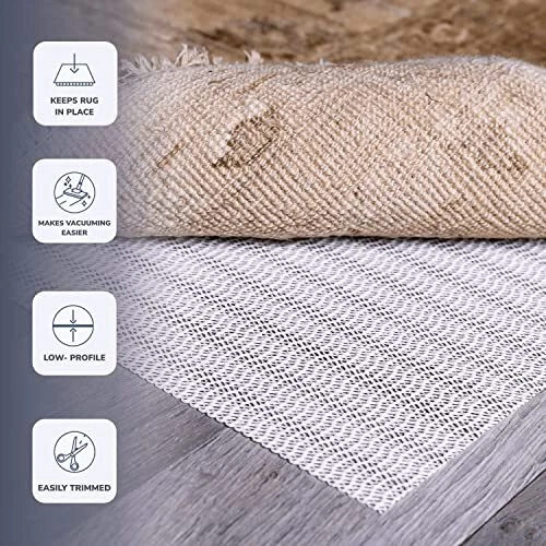 Menu 1. We require immediate payment. 2. We currently accept payment via eBay managed payments only. 3. Once payment is cleared, we will dispatch your shipment within 1-3 business days. Please refer to the "Shipping" tab for more information regarding shipping speed to your destination. Rug Grip Low-Profile Non-Slip Rug Pad for Area Rugs and Runner Rugs, Rug Pad for Hardwood Floors 3 x 5 ft Product description The Rug Grip 3' x 5' rug pad is a popular solution to help area rugs in place on hard surface floors without breaking the bank. Perfectly low profile, it’s designed to help secure area rugs that don’t need extra cushion. Made from a woven polyester scrim coated with a specially formulated high-grade vinyl compound, Rug Grip is durable and strong. Rug Grip uses a special “tight open weave” construction, offering greater surface area coverage but still allowing enough airflow to make vacuuming easier. It’s perfect for high traffic areas with kids and pets. Ready to use right out of the package or simply trim your new rug pad to the right size and shape, drop it on the floor, and place your area rug on top of it. Apply Rug Grip to a clean, dry, and fully cured flooring surface. Please always follow the flooring manufacturer’s rug pad type recommendations. Do not apply vinyl rug pads on lacquered, acrylic, heated, or porous surfaces Guaranteed to hold non-slip properties for 10 years with proper use and maintenance. Hand wash in mild detergent, rinse, and air dry. We use our rug pads in our own homes, and everything we sell is designed with safety and comfort in mind. Out of control rugs can cause slips and falls, damage floors, and cause expensive abrasion repairs. Don’t let your peace of mind slip away, take your floors back today with Rug Grip from . PLEASE MESSAGE US IF YOU HAVE ANY OTHER QUESTIONS, AND MANY THANKS FOR READING ALL OF THIS. Copyright ©#. All Rights Reserved.