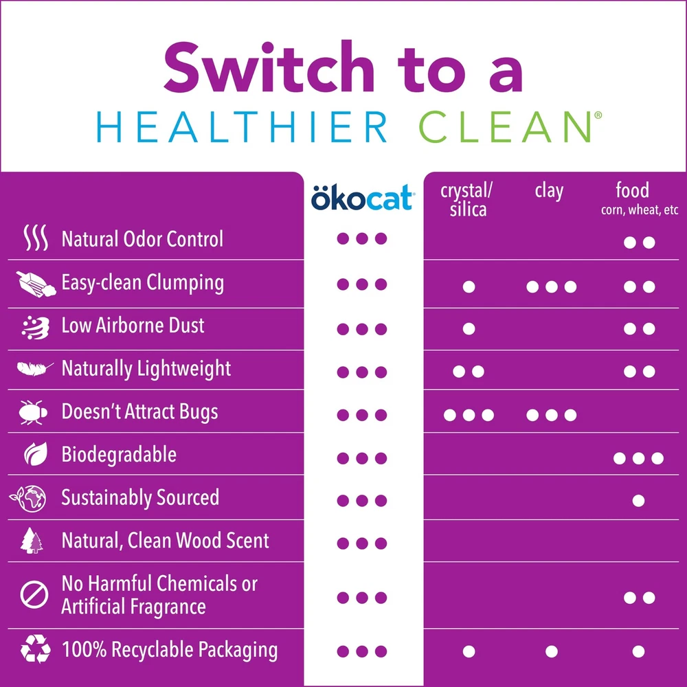 PELLET CAT LITTER: Our next-generation, clumping cat litter mini-pellets are exceptionally absorbent to clump solid and stop odors, and are less likely to stick to your cats' fur or track through the house EXCEPTIONAL ODOR CONTROL: Wood fiber naturally prevents enzymes from bonding with liquid & waste to stop the creation of ammonia & odor CLUMPING LITTER: Pellet litter absorbs liquid on contact, forming solid, easy-to-scoop clumps that make cleaning the litter box quick and easy 99% DUST FREE FOR A HEALTHIER HOME: Our low-dust cat litter is made from clean wood fiber that has been screened and de-dusted for a cleaner pour and a healthier home and no dirty clay dust PLANT-BASED LITTER: Our sustainable cat litter is free of artificial fragrance, harmful chemicals, toxic dyes, and mined clay or silica; unlike clay, our biodegradable cat litter degrades quickly and cleanly