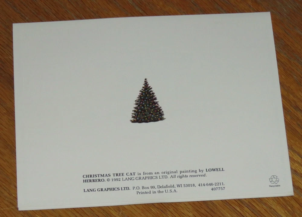 Hard-to-Find, Out-of-Print LANG Christmas Cards Made in U.S.A.©1992 Lang Graphics Ltd. Set of 4 unused cards with linen textured envelopes. Beautiful full color artwork inside and out. Printed on heavy, fine embossed linen paper. Card Size: 7" x 5½"