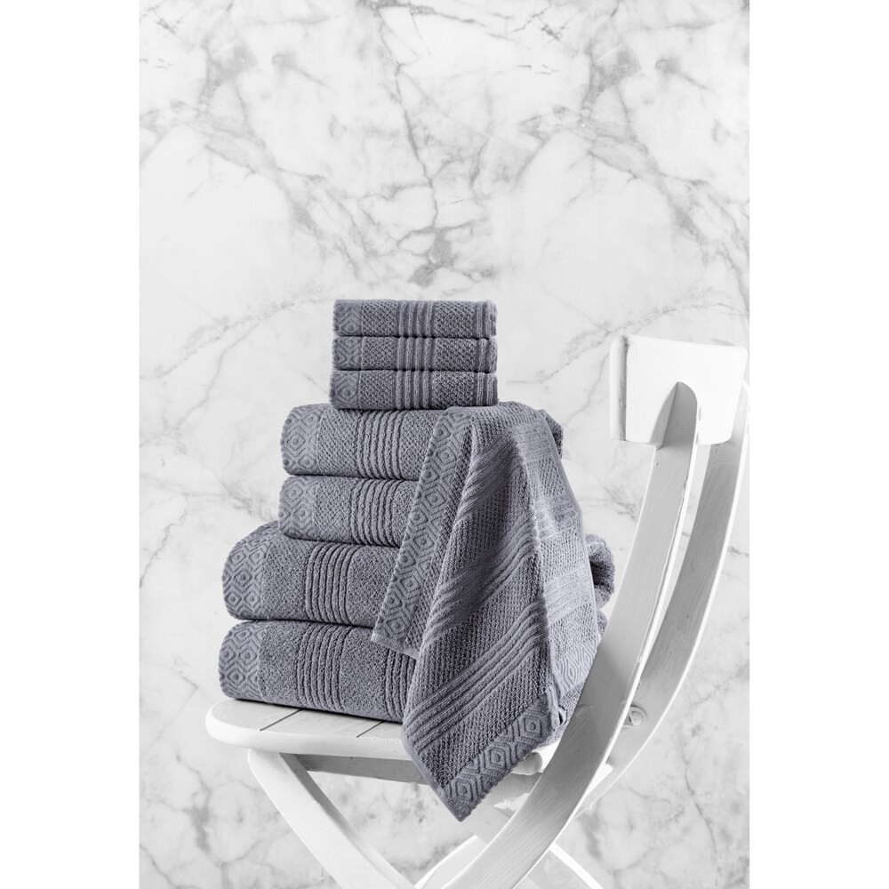 This towel set designed by Lucia Minelli easily fits in any bathroom decor. These luxuriously thick, soft, durable and absorbent towels are woven from plush Turkish Cotton and are designed to not shrink. Each towel set includes two bath towels, two hand towels and two wash cloths. The sumptuous set is available in seven timeless colors to perfectly match your bathroom. This set is easily machine washed and dried, and the dense construction ensures the towels will be favorites for years to come.Set includes: Bath towel, hand towel, wash cloth Pattern: Sculpted body Type of cotton: Turkish Aegean long stable Construction: 2-ply yarn Materials: 100-percent premier Turkish cotton Care instructions: Machine wash warmDimensionsBath towel: 27 inches wide x 55 inches longHand towel: 16 inches wide Free Shipping Over $49.99* Details Lubbock US Cotton Bath towels set of 6 Product Description: This towel set designed by Lucia Minelli easily fits in any bathroom decor. These luxuriously thick, soft, durable and absorbent towels are woven from plush Turkish Cotton and are designed to not shrink. Each towel set includes two bath towels, two hand towels and two wash cloths. The sumptuous set is available in seven timeless colors to perfectly match your bathroom. This set is easily machine washed and dried, and the dense construction ensures the towels will be favorites for years to come. Set includesBath towel, hand towel, wash cloth PatternSculpted body Type of cottonTurkish Aegean long stable Construction2-ply yarn Materials100-percent premier Turkish cotton Care instructionsMachine wash warm Dimensions Bath towel27 inches wide x 55 inches long Hand towel16 inches wide x 27 inches long Wash cloth12 inches wide x 12 inches long The digital images we display have the most accurate color possible. However, due to differences in computer monitors, we cannot be responsible for variations in color between the actual product and your screen.