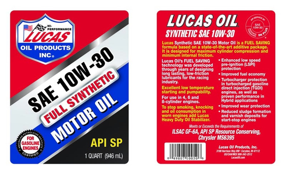 https://ebaystores.s3.us-east-2.amazonaws.com/trendsauto/Lucas-Oil/LUCAS-OIL-10050-QTY6-1.jpg Lucas Oil 10050 Set of 6 Synthetic SAE 10W-30 High Mileage Motor Oil 1qt Bottles PART NUMBER: 10050 BRAND: Lucas Oil DESCRIPTION Lucas Synthetic High Mileage Motor Oils are an excellent product that provides the consistent viscosity needed for precision ET racing. They are blended with an exclusive additive package that includes lubricity agents and anti-seize agents that control drag like a zero weight oil and protect metal like a heavy multi-viscosity oil. They are excellent for normal highway usage. KEY BENEFITS Consistent viscosity oil Perfect oil for high RPM engines Excellent normal highway usage oil Long lasting PACKAGING 1 Quart (Case of 6) 13 lbs VEHICLE COMPATIBILITY