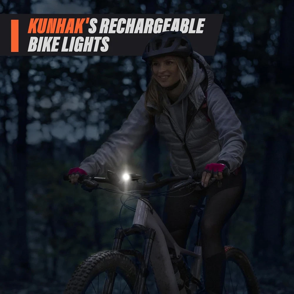 plastic Imported Ultimate Bundle: Get everything you need for your bike in one purchase with our bundle, including a bike headlight and rear bike light. Save time and money by getting all your accessories in one go Multi-mode Brightness: LED bike light provides an impressive 250LM brightness with multiple modes to choose from. The bike headlight has 3 different modes, including high and low brightness as well as a flashing mode. The rear bike light has 4 flashing modes for added safety Safety Comes First: We've a powerful bike light to ensure maximum safety when riding. Be seen by pedestrians and vehicles to minimize accidents Easy Installation: Bike lights are designed with quick release features, making installation a breeze. You can easily detach the bike light to charge quickly. With only 1-2 hours to fully charge, you can enjoy long-lasting use in no time Quality Assurance: We take innovation seriously and are dedicated to producing high-quality bike accessories. If you have any issues and we will provide a solution within 24 hours Product Description Introducing KUNHAK's Rechargeable Bike Lights! bike lights for night riding front and back! Perfect for both kids and adults who enjoy riding their bikes at night! Safety Comes First! Ultra-bright bicycle lights! Crafted with superior quality, these ultra-bright bicycle lights provide a clear view of the road, making your night riding safe and enjoyable. Whether you're cycling on a mountain trail or venturing through the city, these bike accessories are an essential addition to your gear. Bike Headlight has three lighting modes. HIGH BRIGHT MODE! LOW BRIGHT MODE! FLASH MODE! Bike Lights is not all! Safety Comes First! Our rechargeable bike lights allow you to signal your presence to fellow cyclists and pedestrians alike. Plus, with its tail light feature, drivers will be more aware of your presence on the road, ensuring a smooth and seamless ride. The safety of the rear is even more important! Rear bike light has 4 flashing modes for added safety. HIGH BRIGHT MODE! SLOW FLASH MODE! BLINK MODE! FAST FLASH MODE! We take innovation seriously and are dedicated to producing high-quality bike accessories. Welcome to purchase KUNHAK Rechargeable Bike Lights! Plus, thanks to its portability and practical design, you can detach the lights and carry them along with you on all of your cycling adventures. Get your hands on KUNHAK's Rechargeable Bike Lights and experience a safe, efficient, and enjoyable ride. Order yours today and enjoy a lifetime of reliable and effortless use!