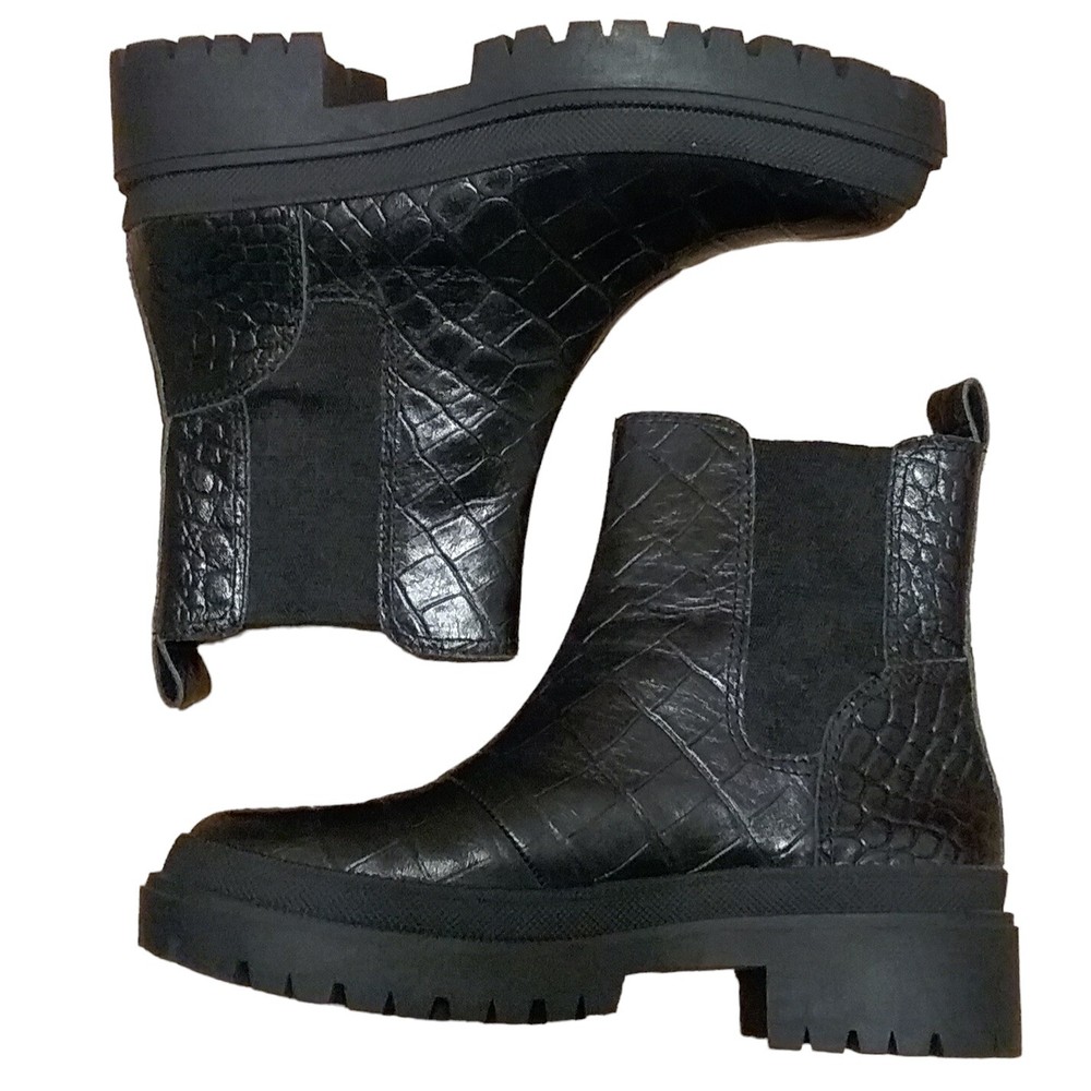 Lucky Brand Emali Women’s Size 7 Black Embossed Leather Boots