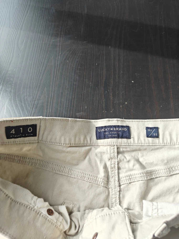 Lucky Brand Pants Mens 33x32 Beige 410 Athletic Slim Stretch Low Rise Meas 33x30