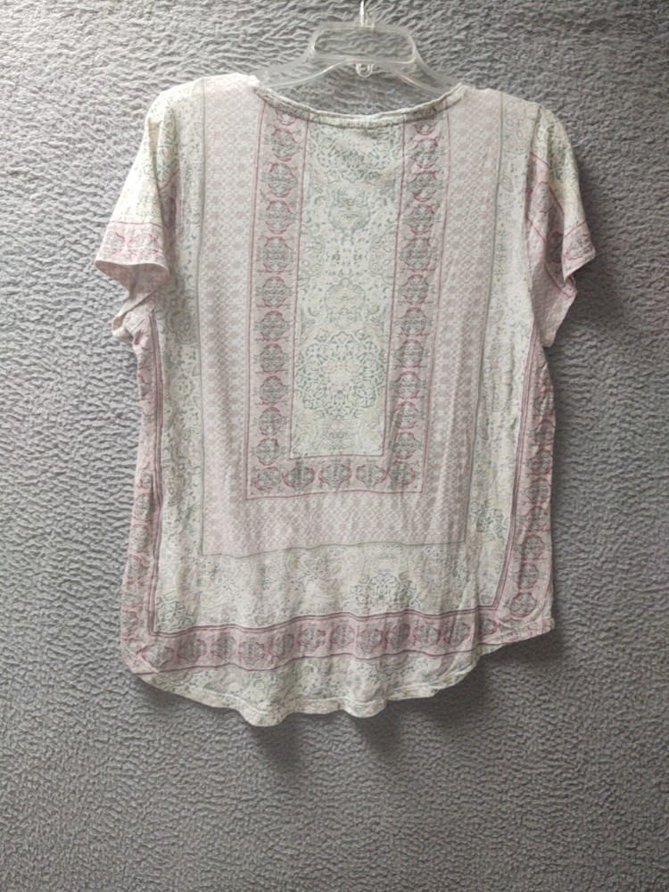Lucky Brand Shirt Womens Large Multicolor 6% Linen Peasant Blouse Top 1154