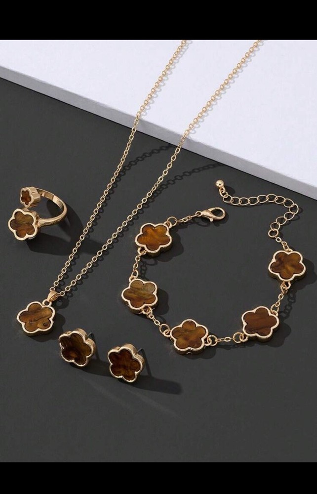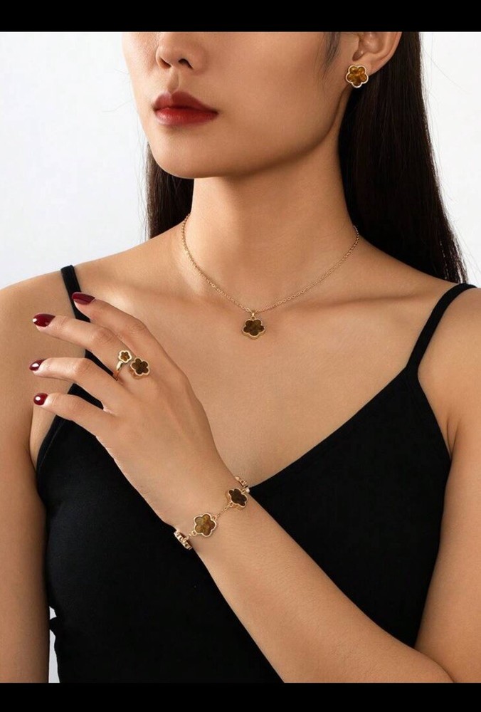 Lucky Clover Flower Necklace, Ring, 2 Bracelets,Earrings Jewelry Set. Condition is New with tags. Shipped with Economy Shipping with Adult Signature Required.