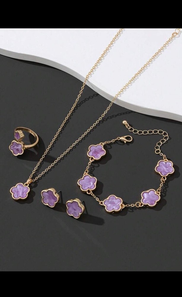 Lucky Clover Flower Necklace, Ring, 2 Bracelets,Earrings Jewelry Set. Condition is New with tags. Shipped with Economy Shipping with Adult Signature Required.