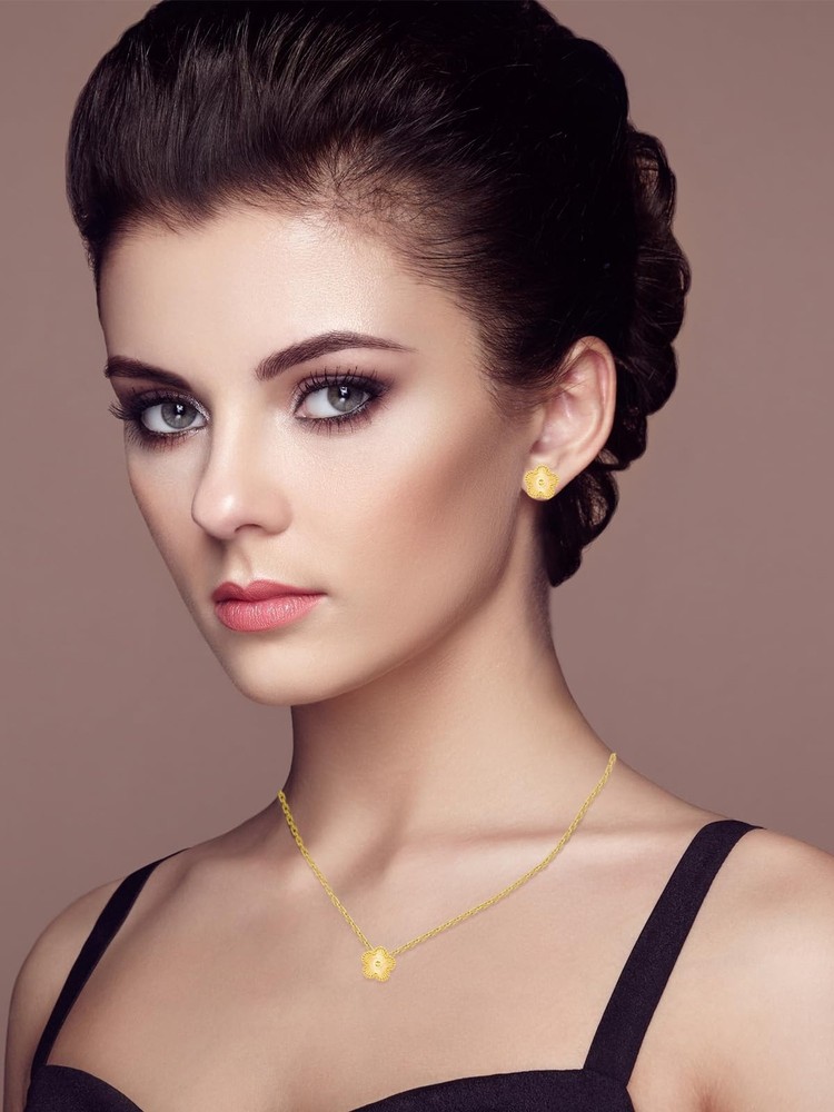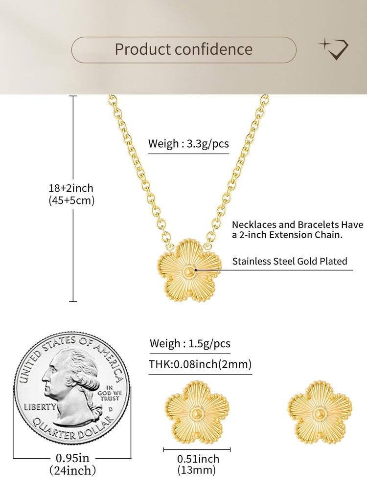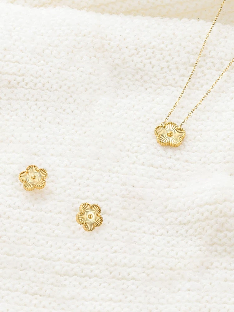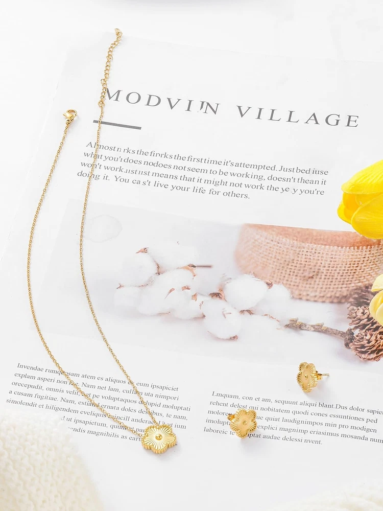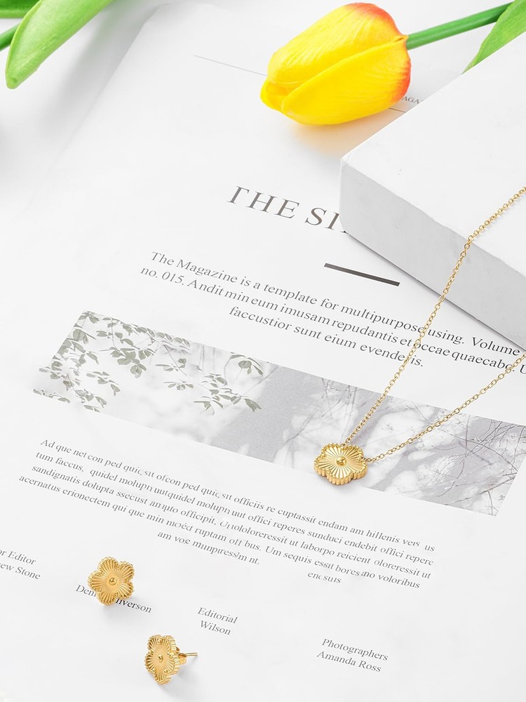 $ 10.71Gold Plated Stainless Steel Four Leaf Clover Necklace and Stud Jewelry Set fo...