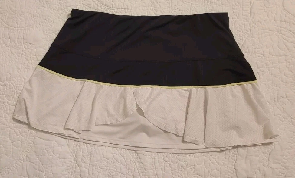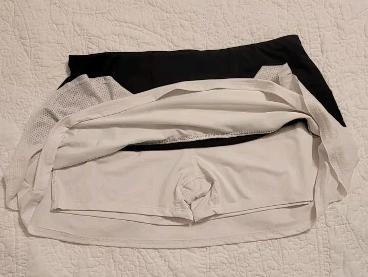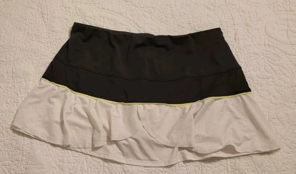 Lucky in Love Tennis Skirt Womens 12 White Black Pickleball Golf Layered Shorts