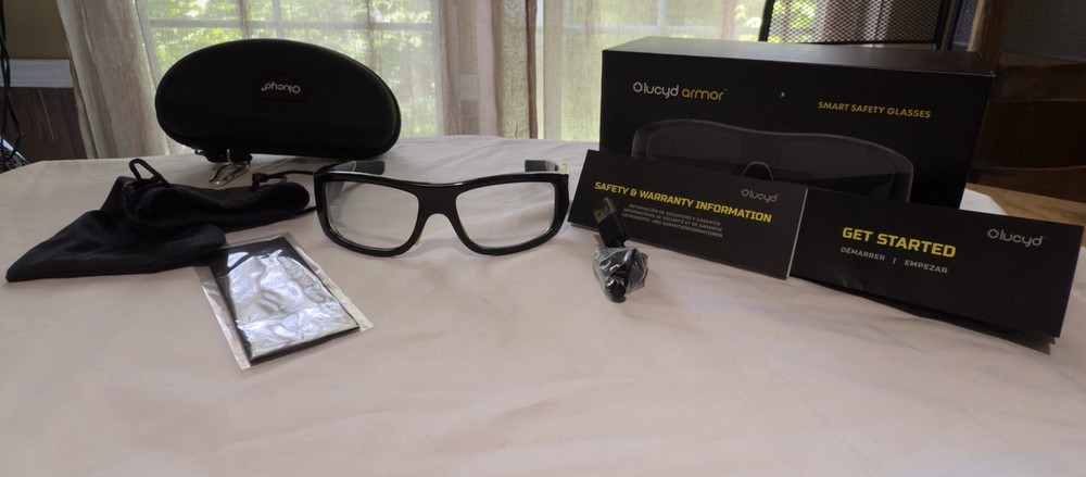 Lucyd Armor Smart Safety Glasses - Bluetooth Audio, AI Assistant, UV400, ANSI Z87.1 Certified Experience the perfect blend of protection, technology, and convenience with these Lucyd Armor Smart Safety Glasses. Designed for both work and everyday use, these glasses offer high-end safety features along with cutting-edge smart technology. Key Features: • Bluetooth Connectivity: Effortlessly pair with your smartphone for hands-free calls, music streaming, and voice assistant control (ChatGPT, Siri, Google Voice via the Lucyd AI app). • Open-Ear Speakers & Built-in Microphone: Stay aware of your surroundings while enjoying crystal-clear audio and easy voice commands. • Light-Adaptive, Self-Tinting Lenses: Seamlessly transition from clear indoors to dark outdoors for optimal vision in any environment. • UV400 Polarized Lenses: Block 100% of harmful UV rays and minimize glare for maximum eye protection. • ANSI Z87.1 Certified: Built for high-impact environments, these glasses meet strict safety standards—perfect for work sites, outdoor activities, or everyday wear. • Durable TR90 Frame: Lightweight, flexible, and extremely durable for all-day comfort. • Long Battery Life: Enjoy up to 8 hours of continuous use on a single charge with the included magnetic charger. • Voice Assistant Compatibility: Fully compatible with ChatGPT, Siri, and Google Assistant for easy voice-activated tasks.