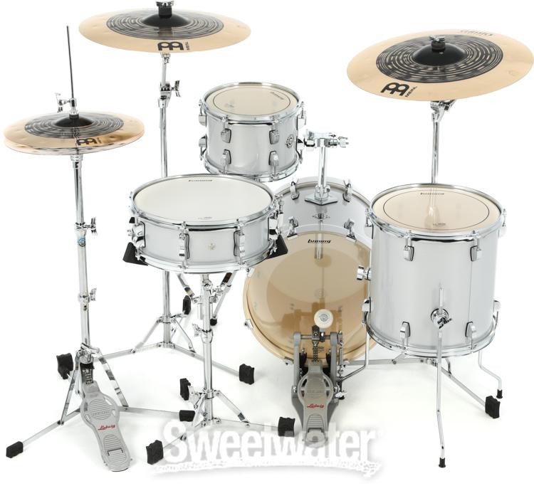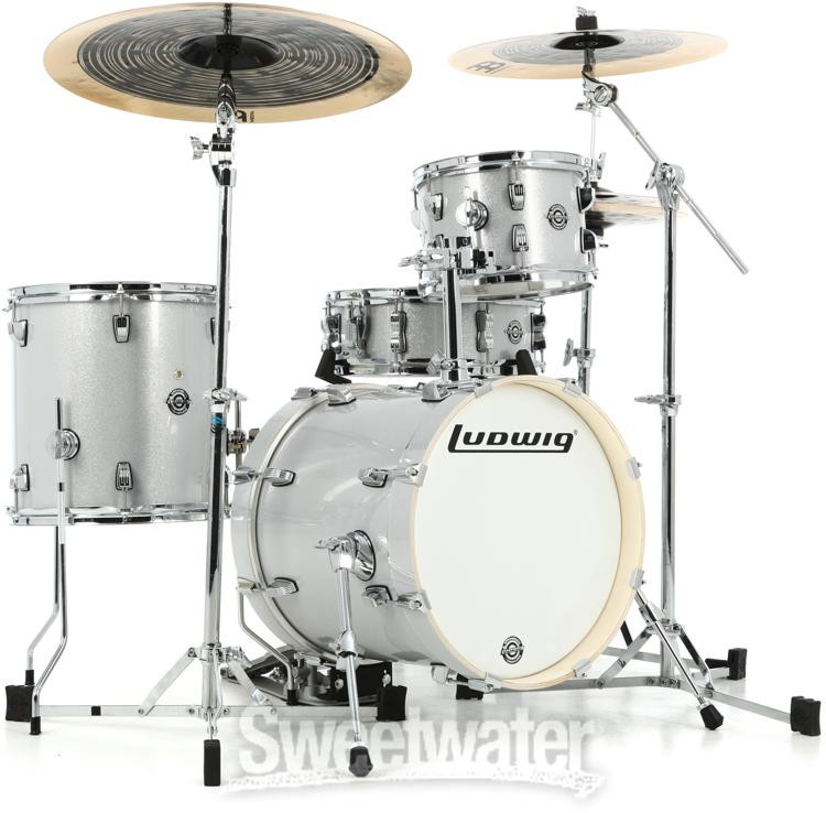 Rock Steady On-the-move Kit by Questlove! Designed by Ahmir “Questlove” Thompson of The Roots, Ludwig’s Breakbeats Series combines a small footprint and a portable drum kit design with high-quality construction. The result gives drummers a space-conscious percussive solution that’s comfortable to play anywhere: from small gigs to street shows! You’ll find that classic, full Ludwig sound wherever you take the Breakbeats, thanks in part to its 7-ply hardwood shell construction across the rack tom, floor tom, kick, and snare. Instant punchy low-end and midrange beats whenever and wherever you need them: it’s the Breakbeats Series from Ludwig and Sweetwater!Bite-size full Ludwig sound Don’t be fooled by the size of the Breakbeats — these shells mean business. Crafted with hearty 7-ply select hardwood shells, this 4-piece attains everything that professional drummers crave about that iconic Ludwig presence, but with a fraction of the footprint. Hand-sanded 45-degree bearing edges on each shell Sweetwater is an Authorized Ludwig Dealer Genuine New Item Sweetwater's 2-year warranty Ludwig Breakbeats 2022 By Questlove 4-piece Shell Pack with Snare Drum - Silver 4-pc Hardwood Shell Pack with 10" Tom, 13" Floor Tom, 16" Bass Drum, and 14" Snare, and Nylon Carrying Bags - Silver Sparkle Rock Steady On-the-move Kit by Questlove! Designed by Ahmir “Questlove” Thompson of The Roots, Ludwig’s Breakbeats Series combines a small footprint and a portable drum kit design with high-quality construction. The result gives drummers a space-conscious percussive solution that’s comfortable to play anywhere: from small gigs to street shows! You’ll find that classic, full Ludwig sound wherever you take the Breakbeats, thanks in part to its 7-ply hardwood shell construction across the rack tom, floor tom, kick, and snare. Instant punchy low-end and midrange beats whenever and wherever you need them: it’s the Breakbeats Series from Ludwig and Sweetwater! Bite-size full Ludwig sound Don’t be fooled by the size of the Breakbeats — these shells mean business. Crafted with hearty 7-ply select hardwood shells, this 4-piece attains everything that professional drummers crave about that iconic Ludwig presence, but with a fraction of the footprint. Hand-sanded 45-degree bearing edges on each shell means smooth and even surfaces for enhancing shell tone and drumhead response. Outfitted with a set of premium Remo Pinstripes, and you’ll never want to put the sticks down. Shell pack only. Cymbals and stands sold separately. Designed to groove and move Portability is key, and nobody understands that more than drummers. The Breakbeats is a city percussionist’s best friend, allowing for lightweight and convenient travel wherever you require. The compact storage bags are transport friendly, and double as dampeners for when you need to tone down your sound. Upgrades like new tom brackets and new bass drum spurs and hoops give the Breakbeats a beautiful combination of aesthetic elegance and daily functionality. In terms of sizing, this condensed kit is centered on a compact 14-inch x 16-inch bass drum, with an accompanying 7-inch x 10-inch mounted tom and 13-inch x 13-inch floor tom. The 5-inch x 14-inch snare will still deliver those bright and snappy twos and fours no matter your style — from soul to funk, jazz to rap, and everywhere in between. As Questlove himself put it, “Breakbeats by Questlove does it all.” Ludwig Breakbeats by Questlove 4-piece Shell Pack w/ Snare Features: Ideal drum kit for smaller spaces, street shows, and compact gigs Great affordable solution fit for a variety of drumming styles 7-ply select hardwood shell construction delivers that classic Ludwig tone 45° bearing edges allow for drumheads to rest flat supply optimal resonance Comes outfitted with a set of Remo Pinstripe drumheads Upgraded tom brackets, bass drum spurs, and bass drum hoops promote reliable functionality Nylon travel bag set makes transport a breeze and doubles as dampening set Included shells: 7-inch x 10-inch mounted tom, 13-inch x 13-inch floor tom, 14-inch x 16-inch bass drum, and 5-inch x 14-inch snare drum Specification Detail Finish Silver Sparkle Configuration Shell Pack with Snare Number of Drums 4 Snare (Depth x Diameter) 5" x 14" Mounted Toms (Depth x Diameter) 7" x 10" Floor Toms (Depth x Diameter) 13" x 13" Bass Drums (Depth x Diameter) 14" x 16" Shell Material Hardwood RETURN INFORMATION We want you to be completely happy with your purchase from Sweetwater. If you are not satisfied with your product, you may return it for a refund of the purchase price within 30 days. If your purchase was eligible for Free Shipping, the shipping cost will be deducted from your credit or refund. Returns must be in the complete and original packaging with all accessories and complete documentation (Owner's Manual, warranty card, quick start guides, etc.), show no signs of wear or use, and include a Return Authorization number or be subject to a restocking fee.